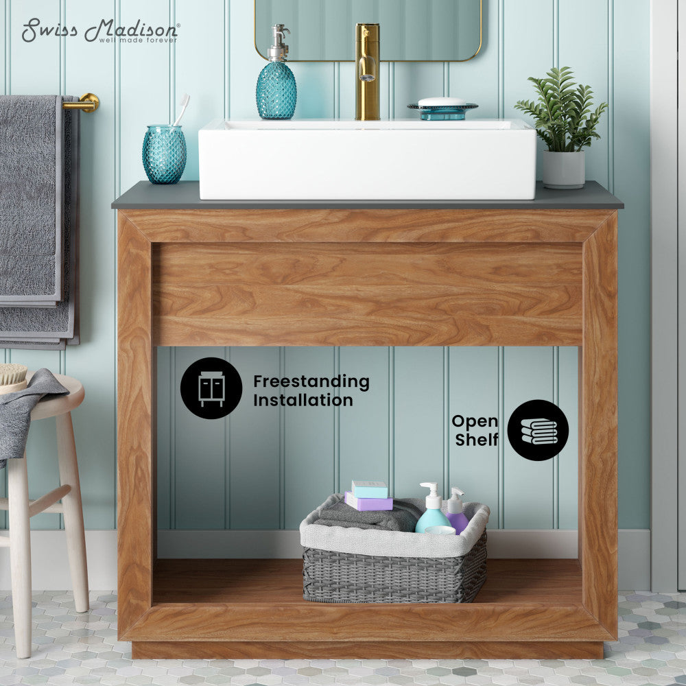 Rennes 36" Freestanding Bathroom Vanity in Natural Teak with Sink Top