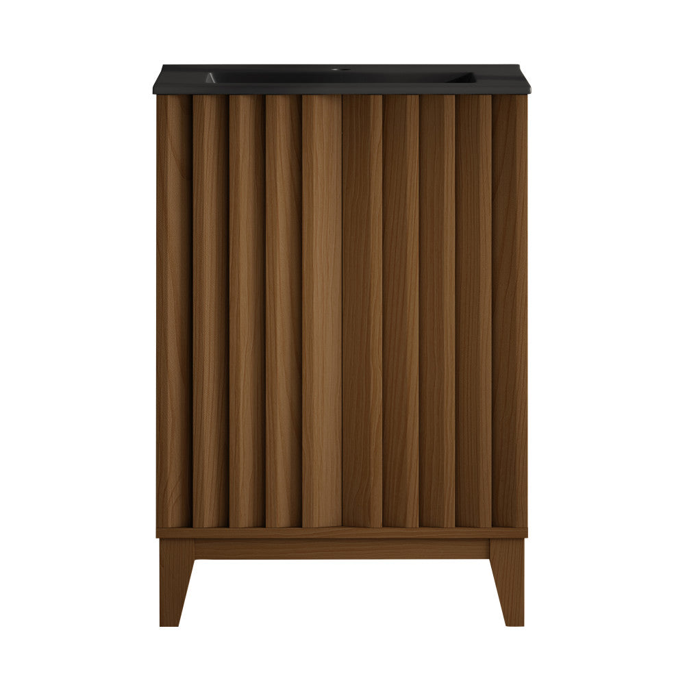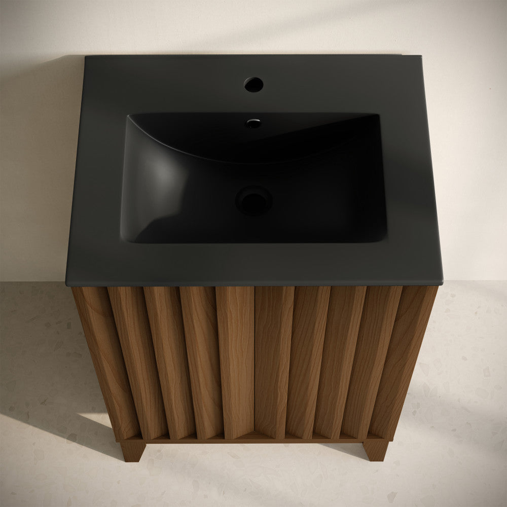 Troyes 24" Freestanding Bathroom Vanity in Brown Oak with Black Sink Top