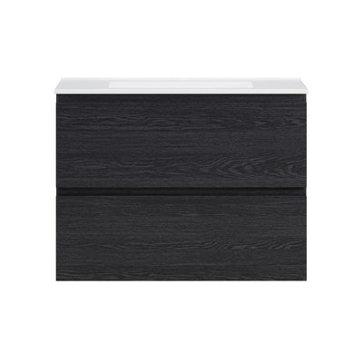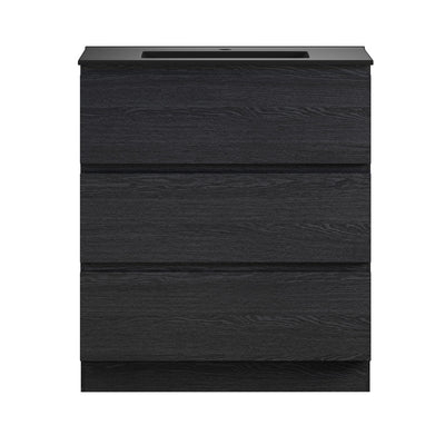 Liberte 30" Freestanding Bathroom Vanity in Black Oak with Black Sink Top