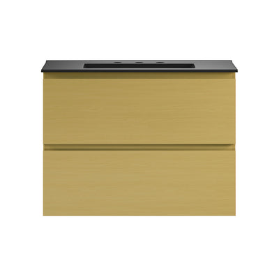 Liberte 30" Wall-Mounted Bathroom Vanity in Natural Oak with Black 3-Hole Widespread Sink Top