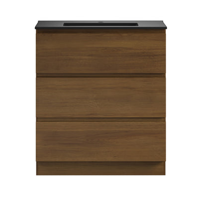Liberte 30" Freestanding Bathroom Vanity in Brown Oak with Black Sink Top