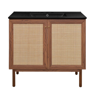 Classe 36" Freestanding Bathroom Vanity in Brown Oak with Black Sink Top