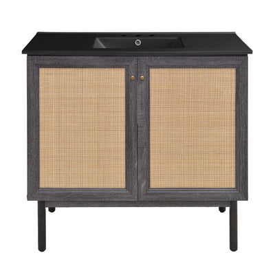 Chateau 36" Freestanding Bathroom Vanity in Black Oak with Black Sink Top