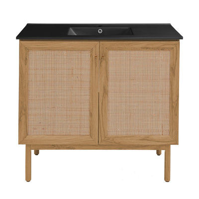 Classe 36" Freestanding Bathroom Vanity in Golden Oak with Black Sink Top