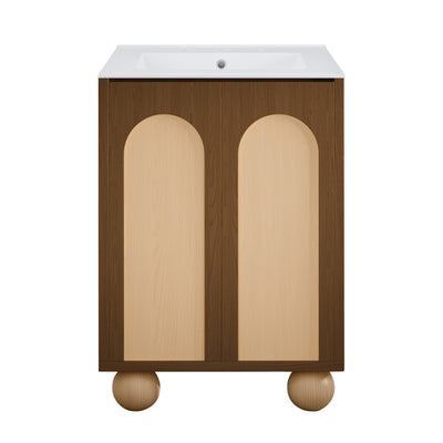 Nadar 24 in. Brown Walnut Bathroom Vanity With White, 3-Hole Ceramic Sink Top