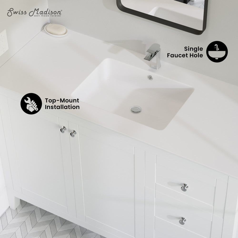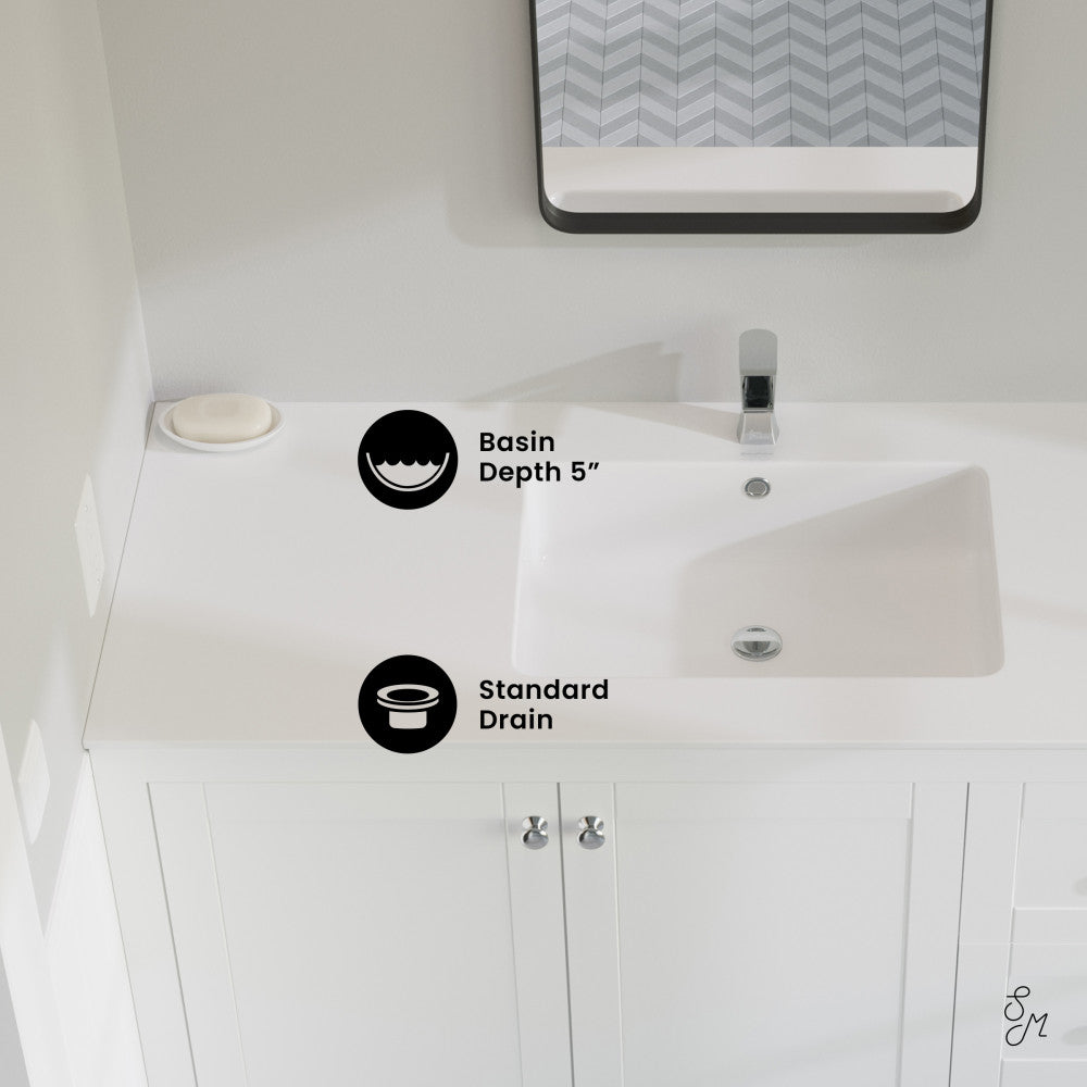 - Top-Mount Installation: Vanity top with integrated bowl provides a seamless and functional design.