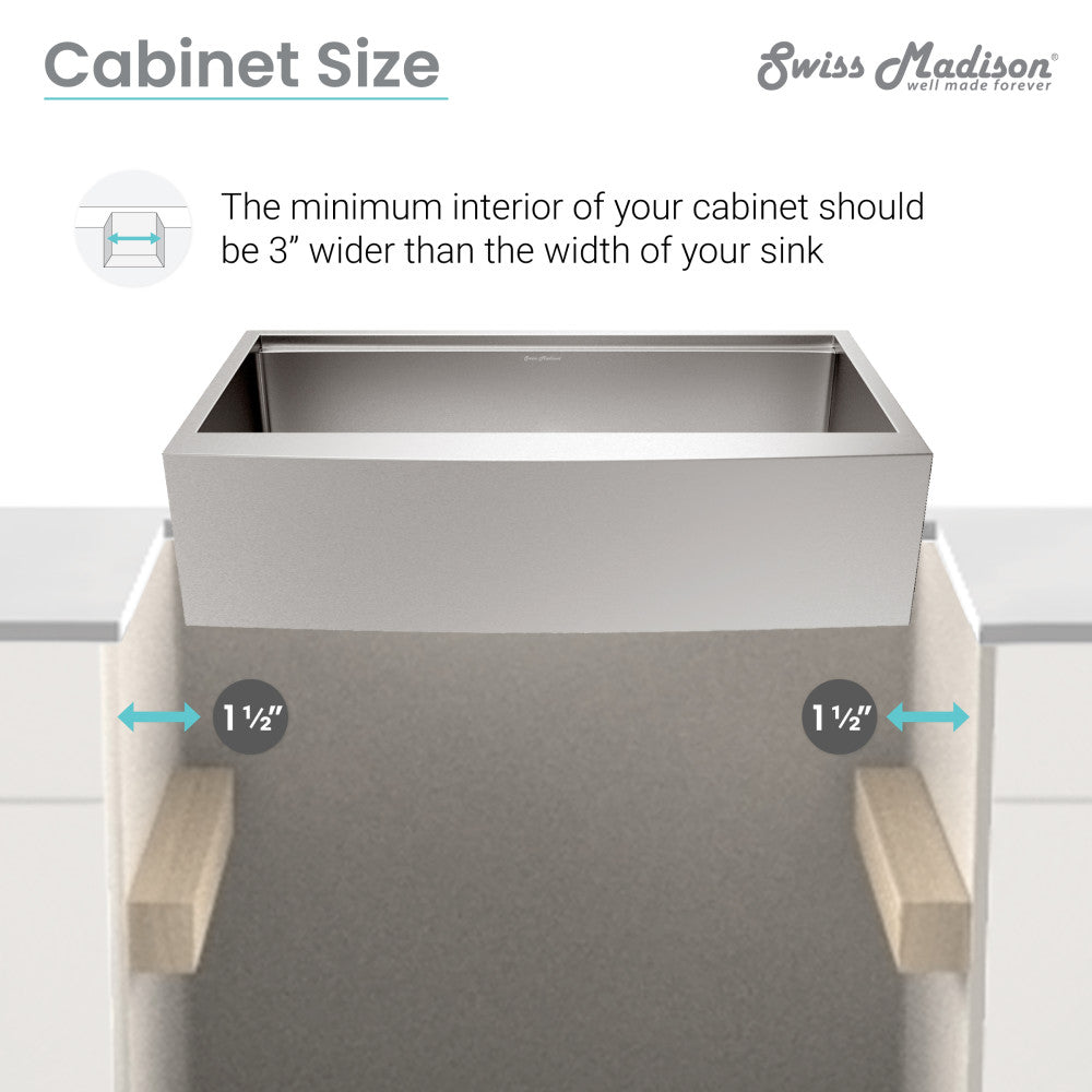 - Cabinet Size: The minimum interior of your cabinet should be 3" wider than the width of your sink.