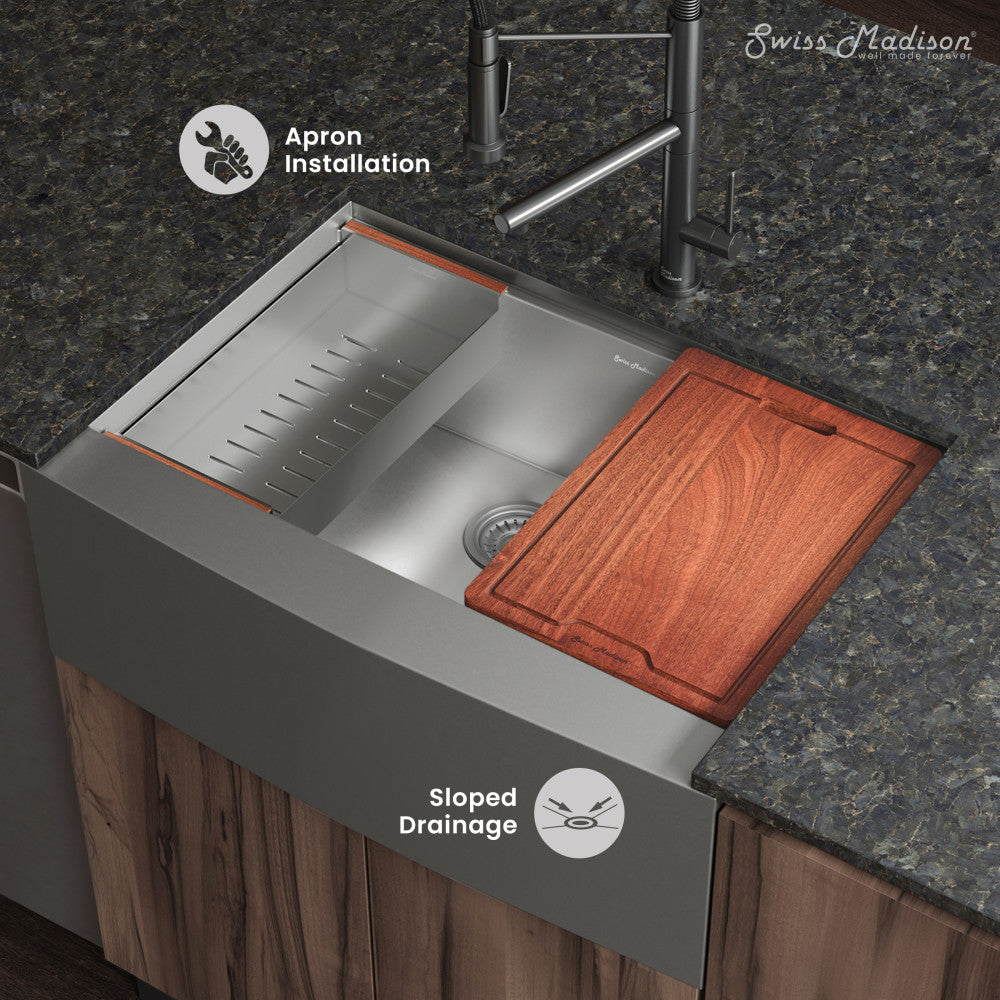 Immerse yourself in coastal tranquility with the Rivage collection, embracing relaxed elegance and natural textures. Transform your kitchen sink into a hub of culinary creativity with our workstation sinks, offering integrated accessories for ultimate functionality. Offered in stainless steel with a polished finish.