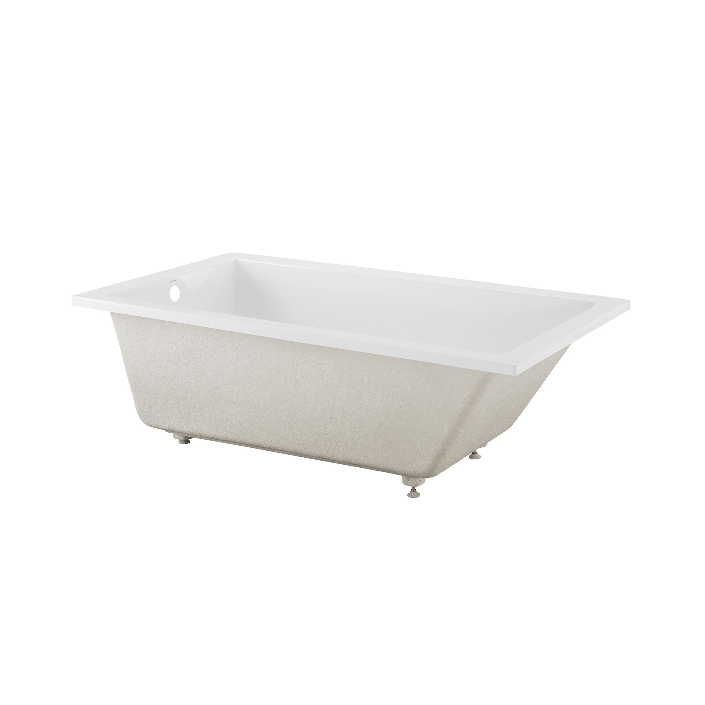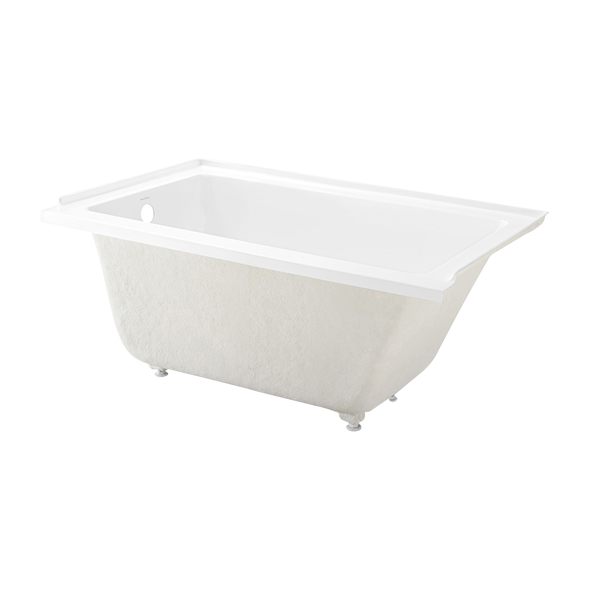 Drop-in bathtubs are designed to fit inside of a 4 wall frame. Since no sides of the bathtub are exposed, these tubs do not have front aprons, nor do they have integral tile flanges. This makes drop-in bathtubs reversible, so you do not need to specify a left-hand or right-hand drain. You should consult with a plumber for information on supplementing the tile flange with plumber’s tape. One added benefit for drop-in bathtubs is that they are installed further away from the wall than an alcove tub, which provides a larger ledge for decor and bath products.