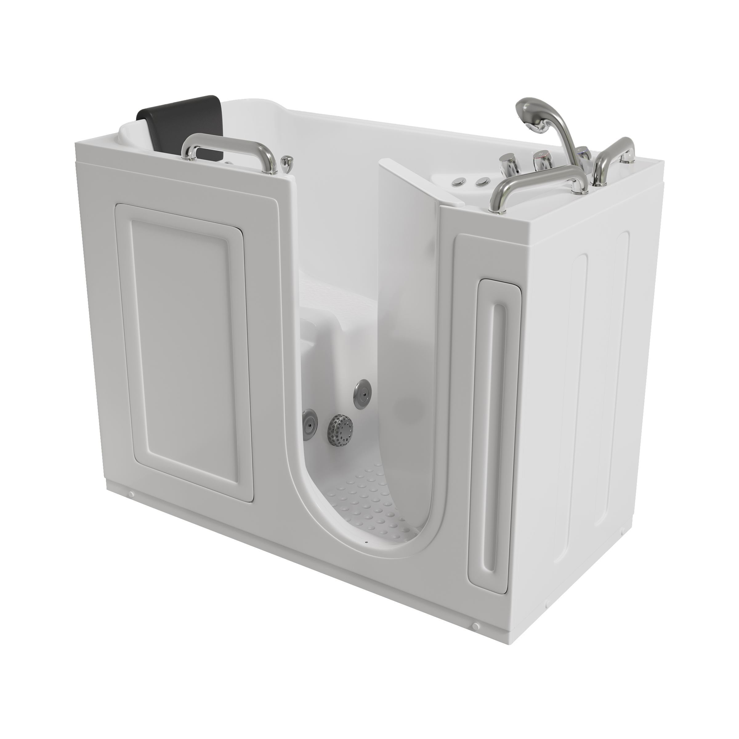 Walk in bathtubs are an ideal choice for those with mobility issues. This style of bathtub has a door embedded into the tub wall, so users do not have to step over any sort of wall. These tubs also typically include a built-in seat, to help assist elderly persons or those with mobility issues.