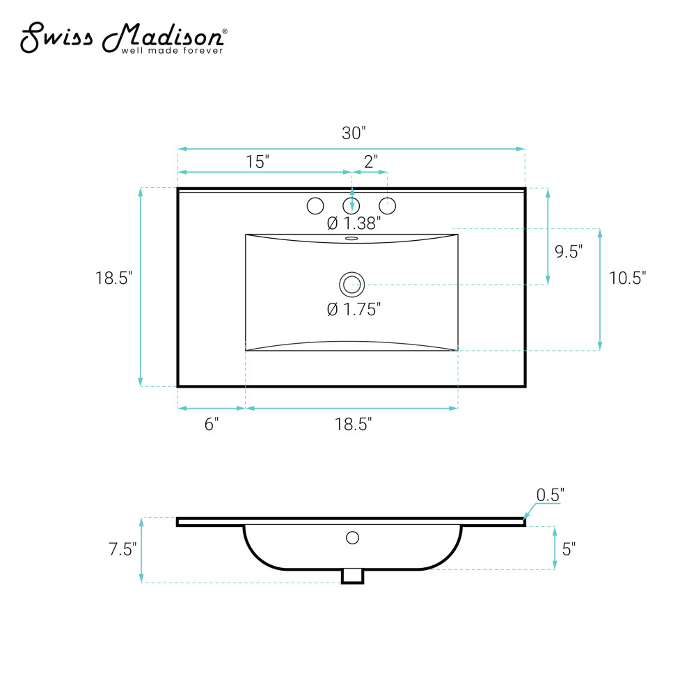 Discover intricate precision and design excellence in the Swiss Madison collection, redefining contemporary bathroom aesthetics. Discover the epitome of seamless design and effortless maintenance with our vanity tops. A perfect blend of aesthetics and functionality. Offered in white with a glossy finish.