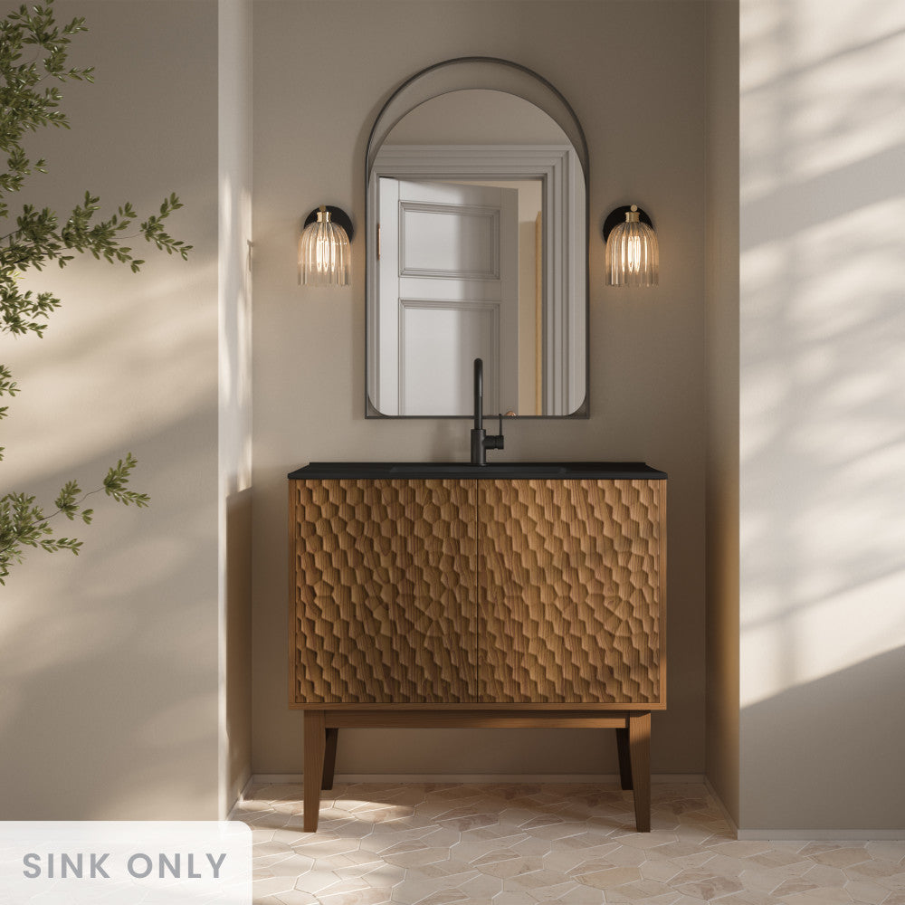 Explore a world of exceptional bathroom fixtures and essentials, where quality and design unite to elevate your bathroom with lasting style and unmatched functionality. Discover the epitome of seamless desgin and effortless maintenance with our vanity tops. A perfect blend of aesthtics and functionality. Offered in black with a glossy finish.