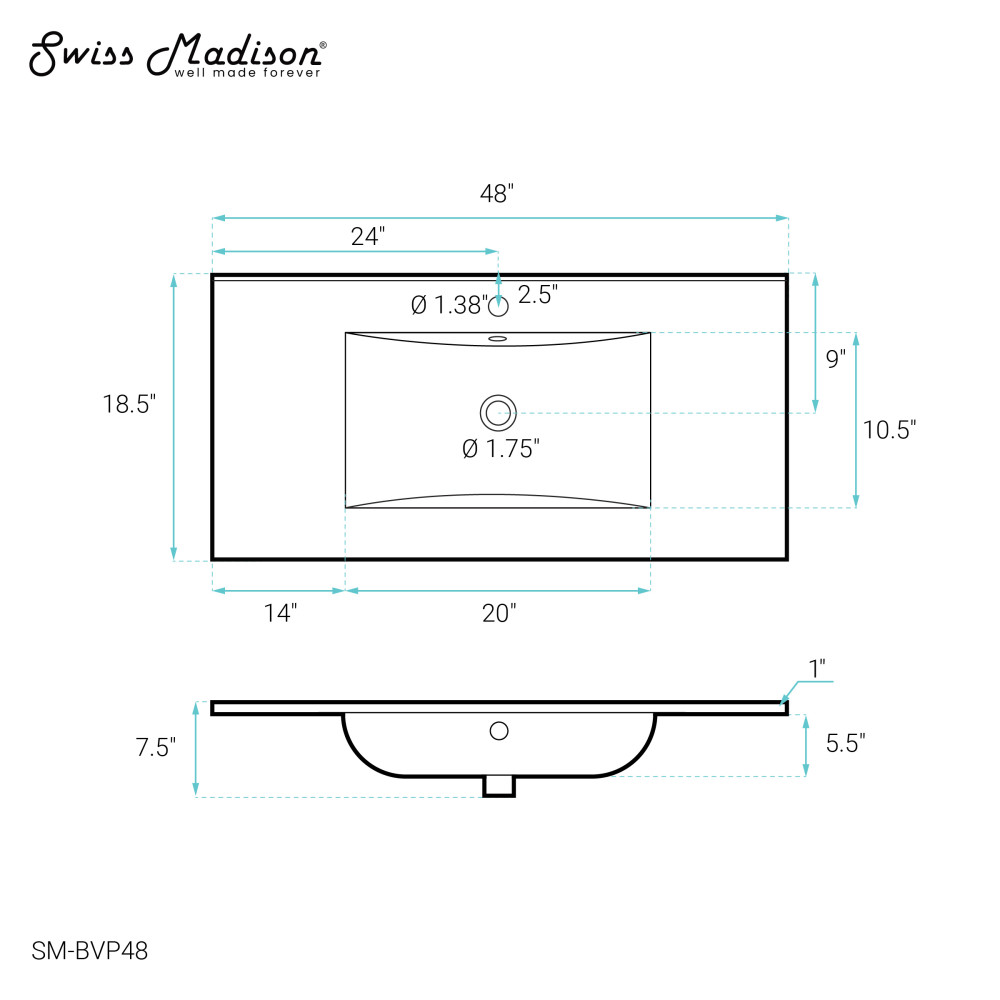 Discover intricate precision and design excellence in the Swiss Madison collection, redefining contemporary bathroom aesthetics. Discover the epitome of seamless design and effortless maintenance with our vanity tops. A perfect blend of aesthetics and functionality. Offered in white with a glossy finish.