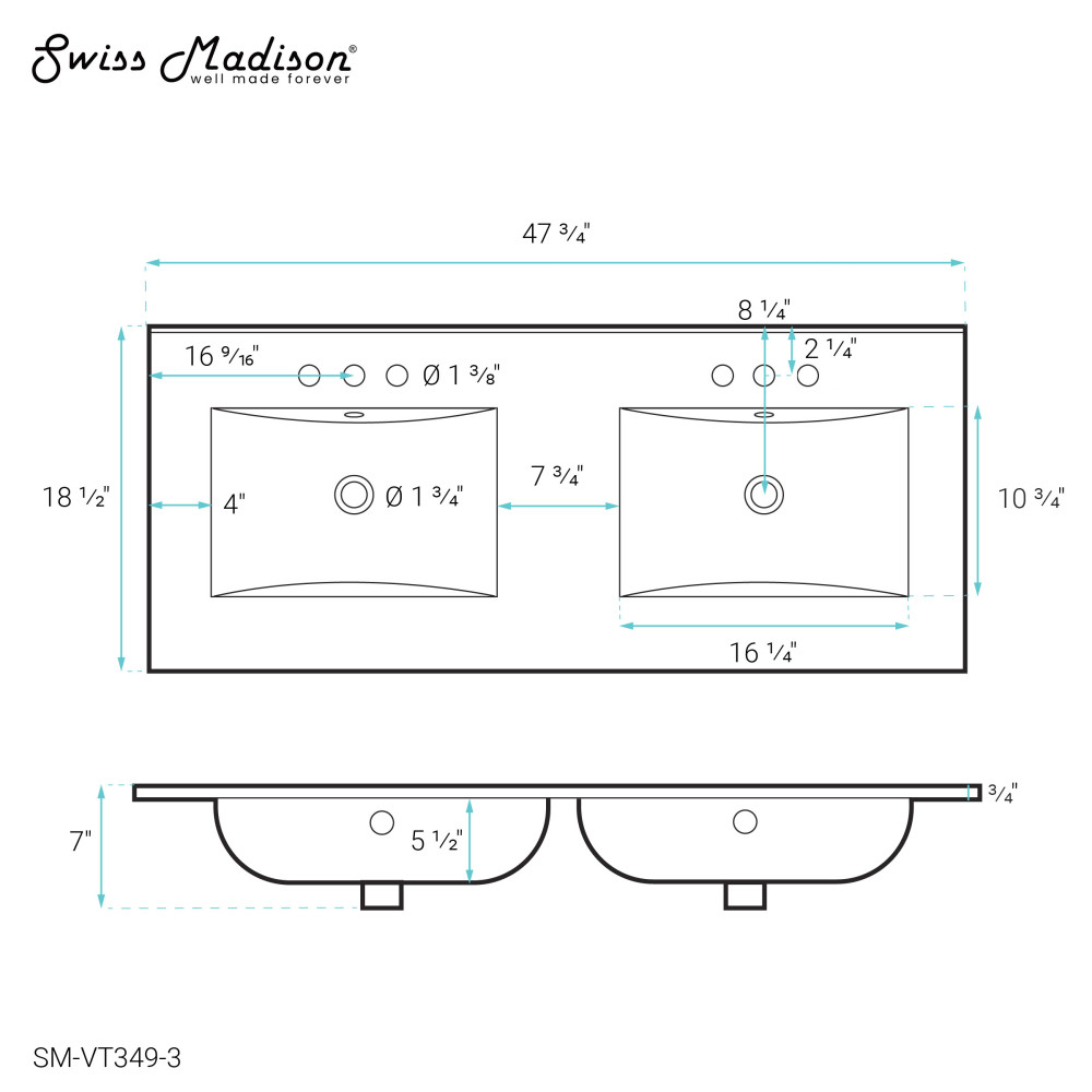 Discover intricate precision and design excellence in the Swiss Madison collection, redefining contemporary bathroom aesthetics. Discover the epitome of seamless design and effortless maintenance with our vanity tops. A perfect blend of aesthetics and functionality. Offered in white with a glossy finish.