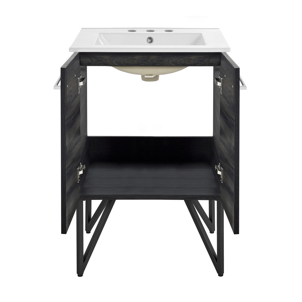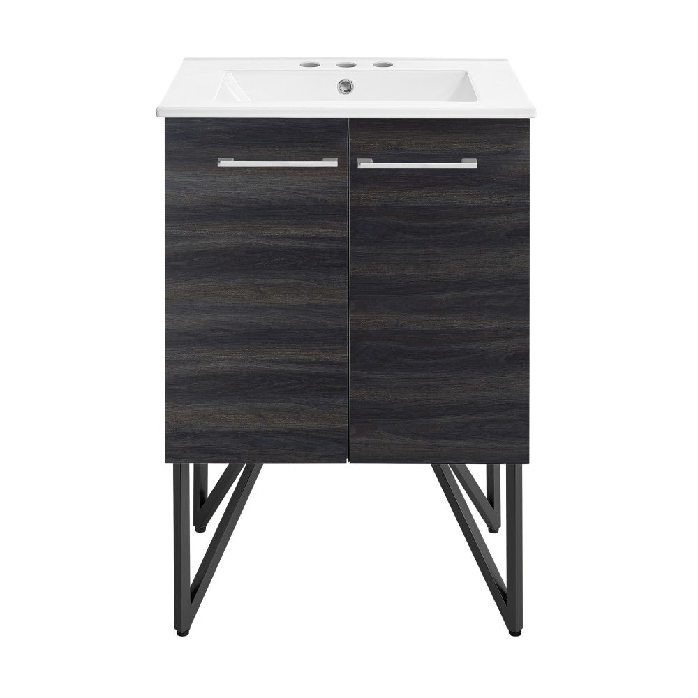 Annecy 24 in. Black Walnut Bathroom Vanity With White, 3-Hole Ceramic Sink Top
