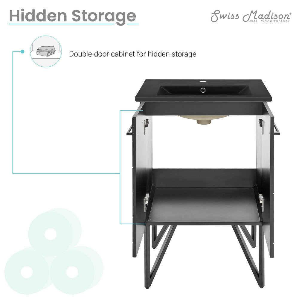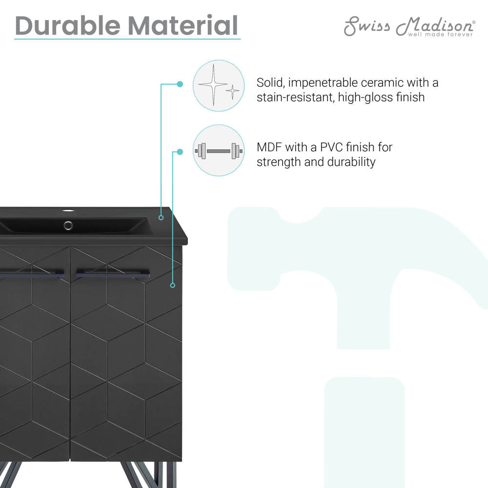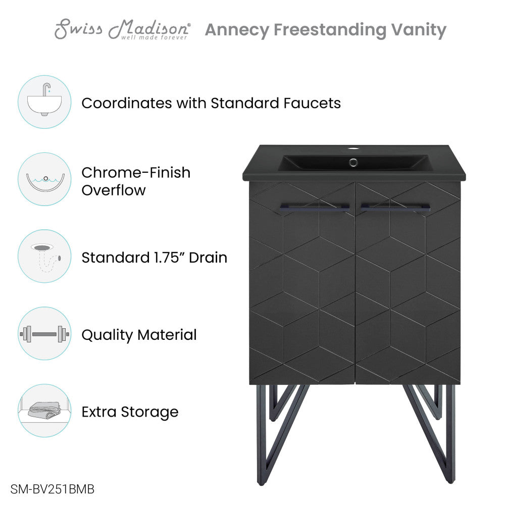 Annecy 24 in. Phantom Black Bathroom Vanity With Black Ceramic Sink Top