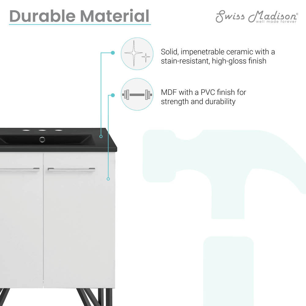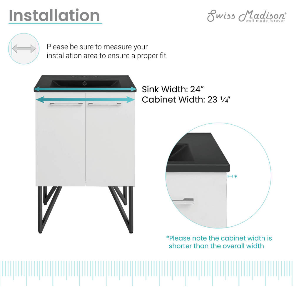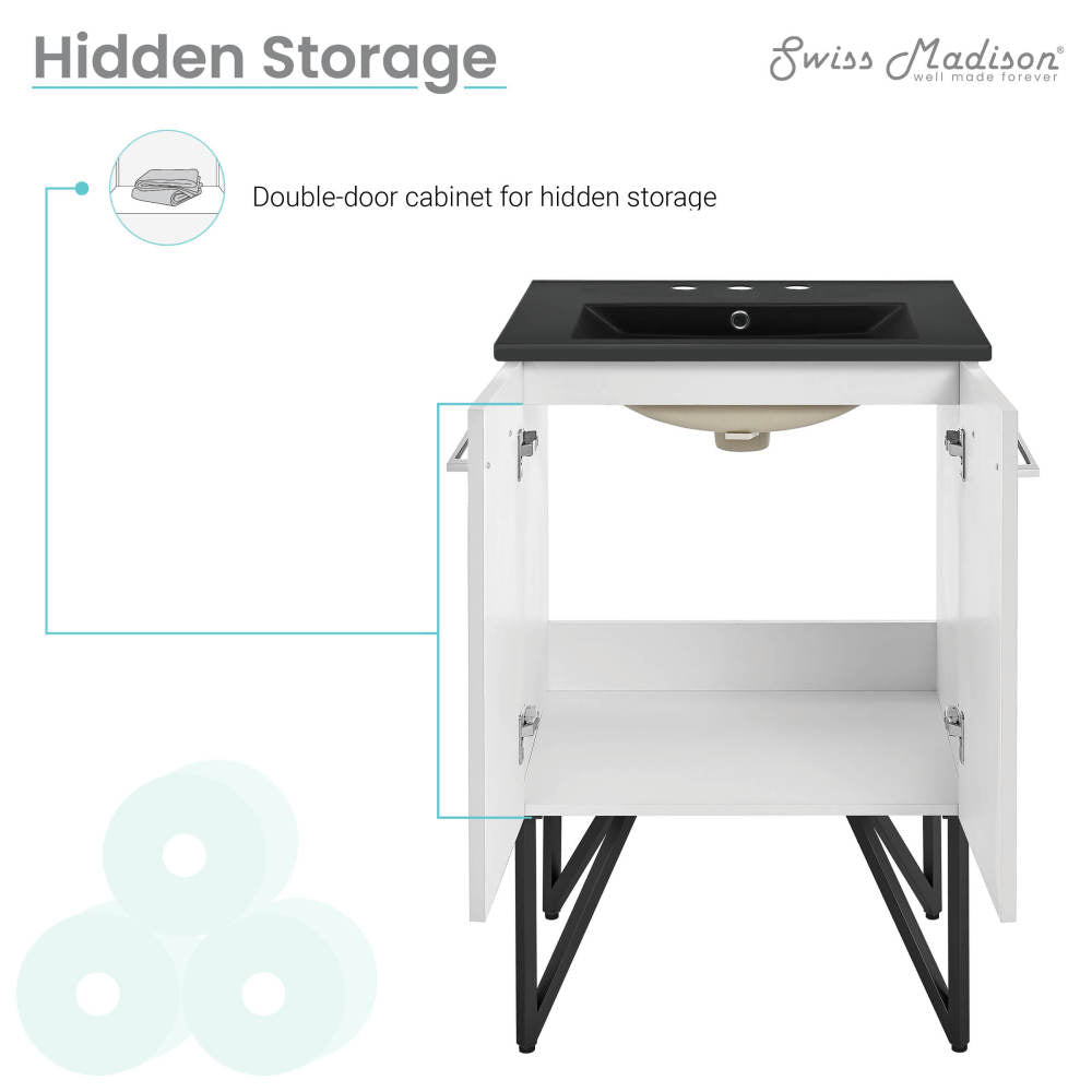 Annecy 24 in. White Bathroom Vanity With Black, 3-Hole Ceramic Sink Top