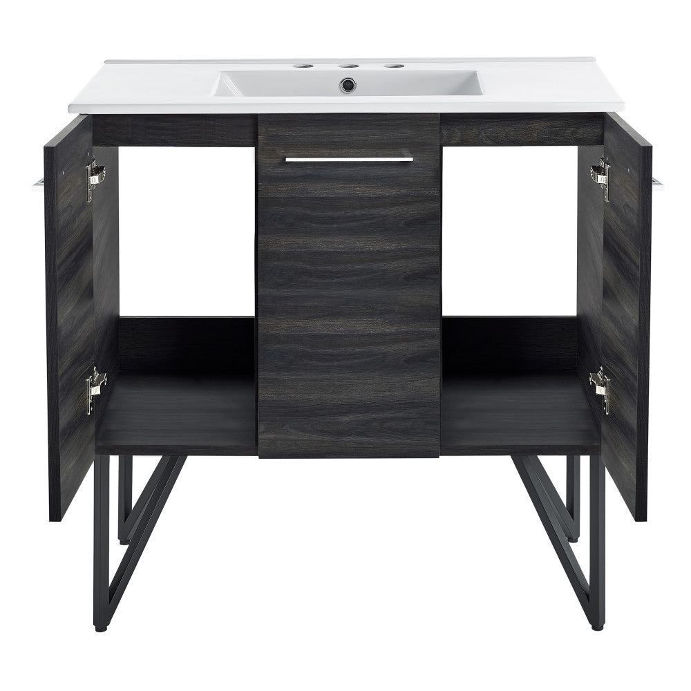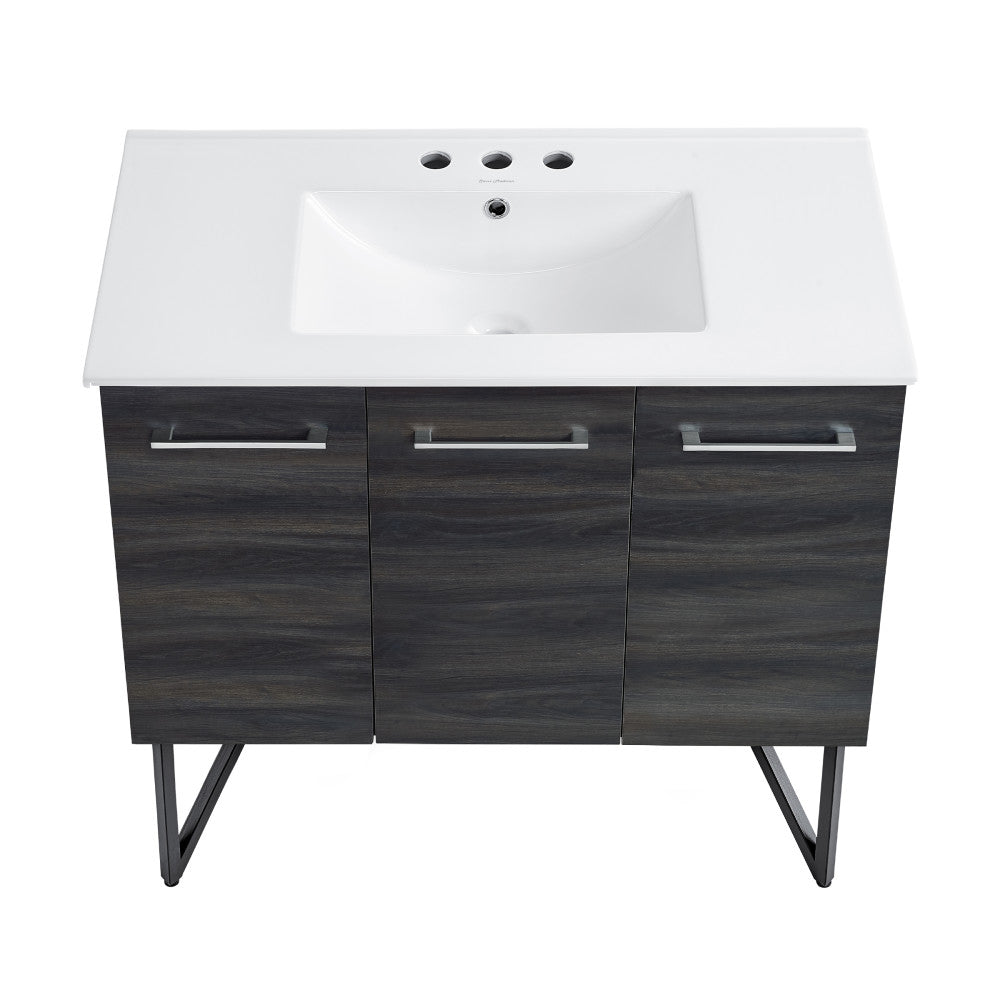 Annecy 36 in. Black Walnut Bathroom Vanity With White, 3-Hole Ceramic Sink Top