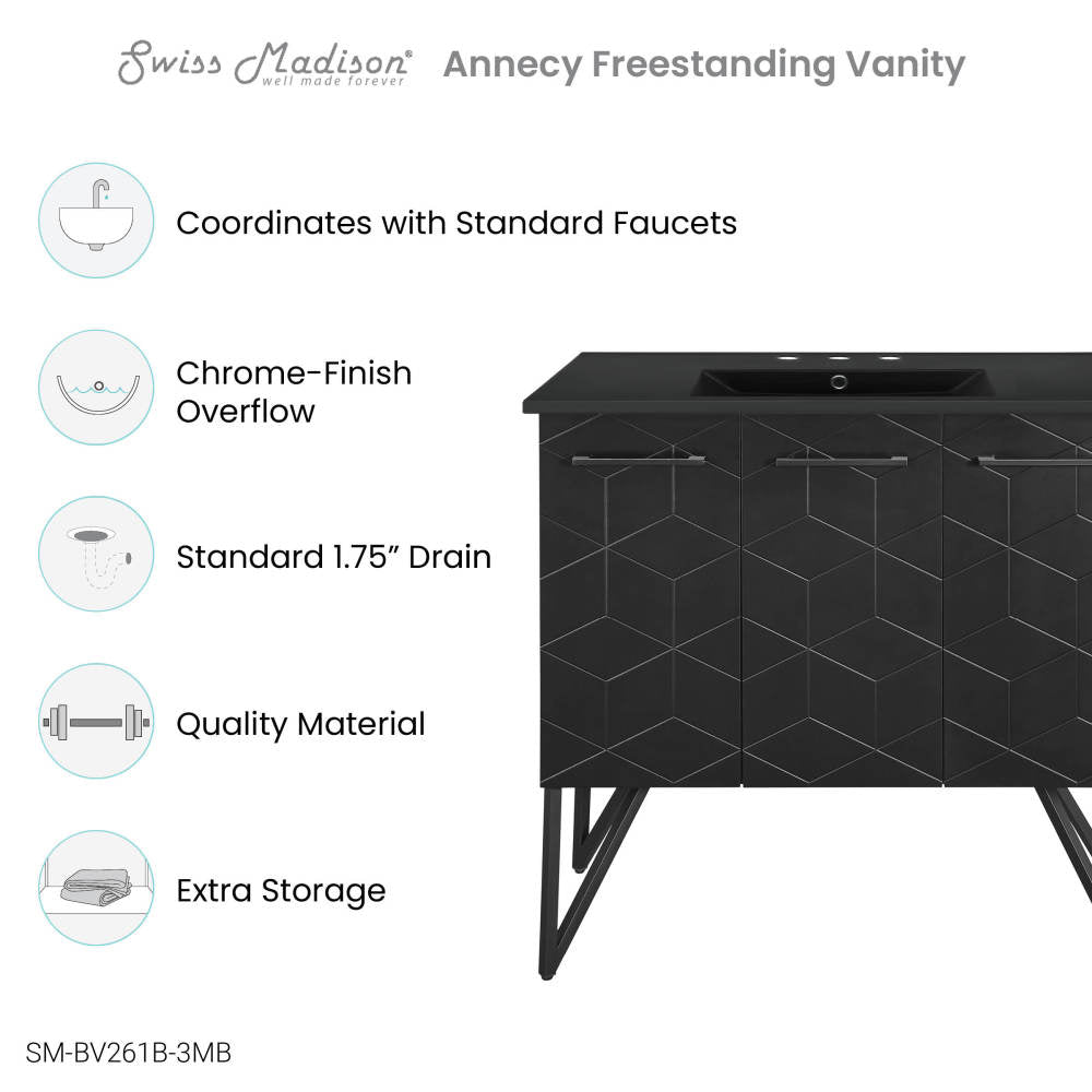 Embrace the beauty of Annecy, a collection that marries traditional craftsmanship with contemporary living. Transform your bathroom into a sanctuary of style and functionality with our exquisite bathroom vanities, meticulously crafted to reflect your unique taste. Offered in black.