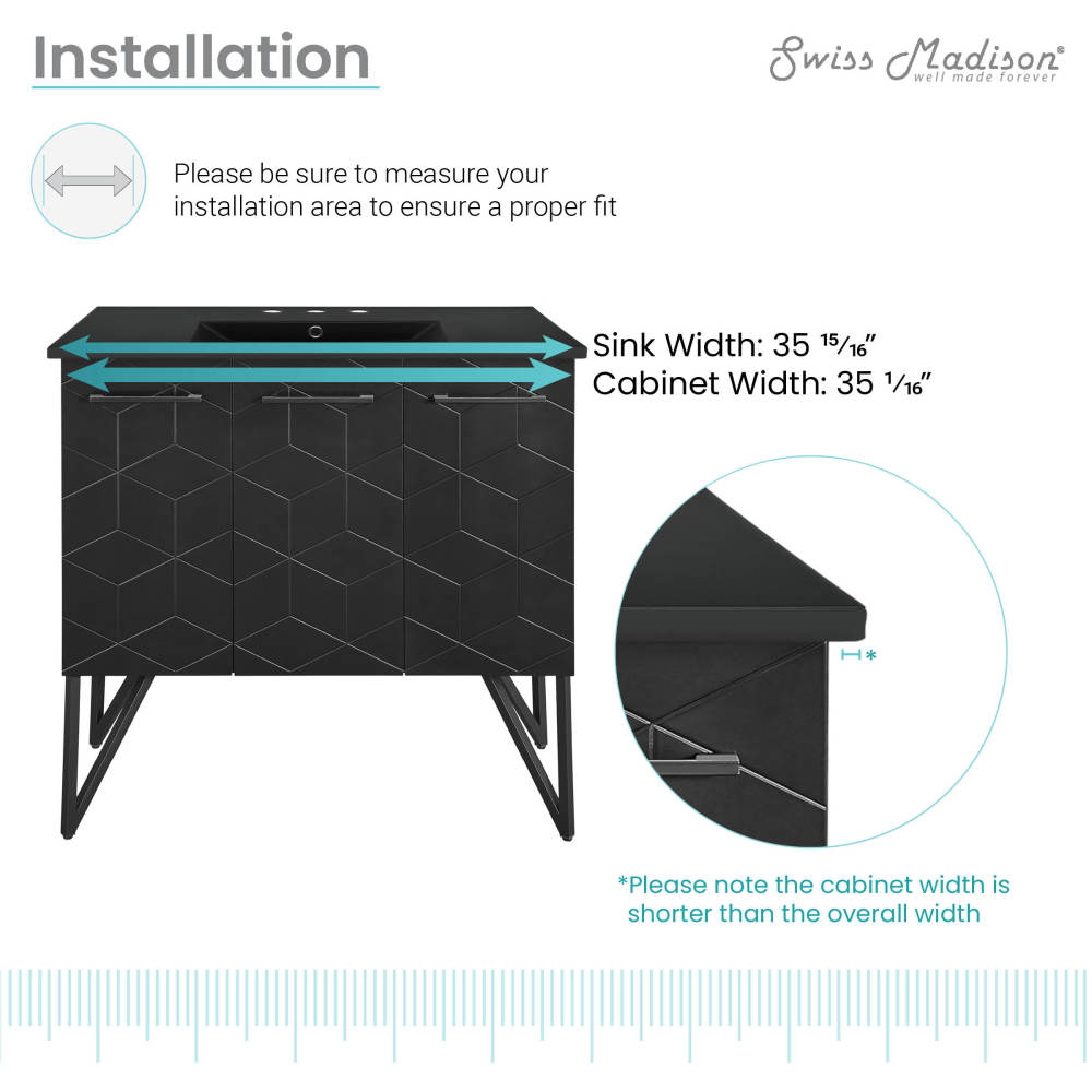 Annecy 36 in. Phantom Black Bathroom Vanity With Black, 3-Hole Ceramic Sink Top