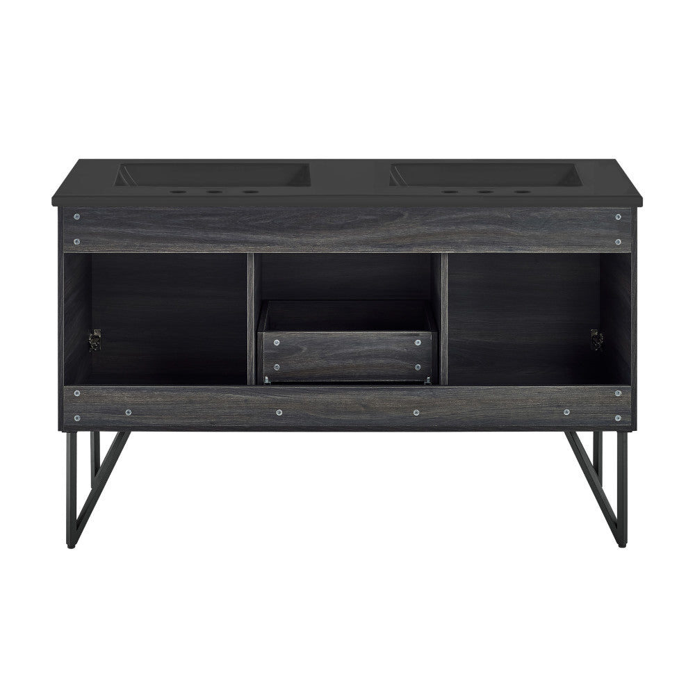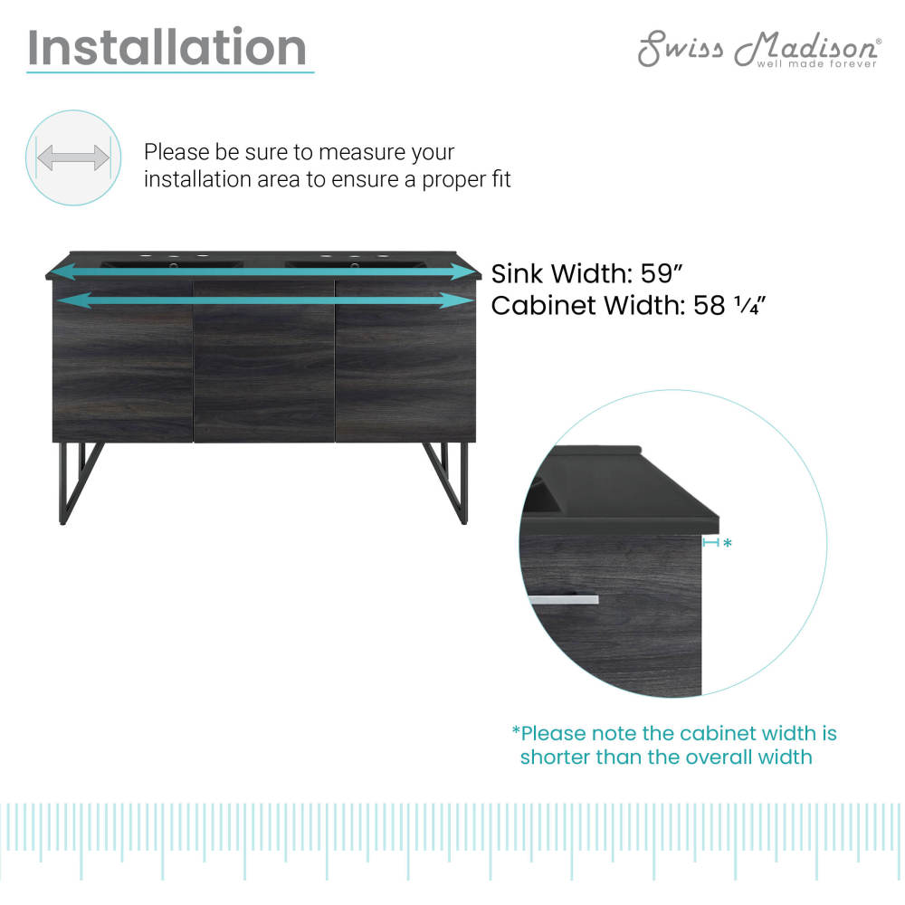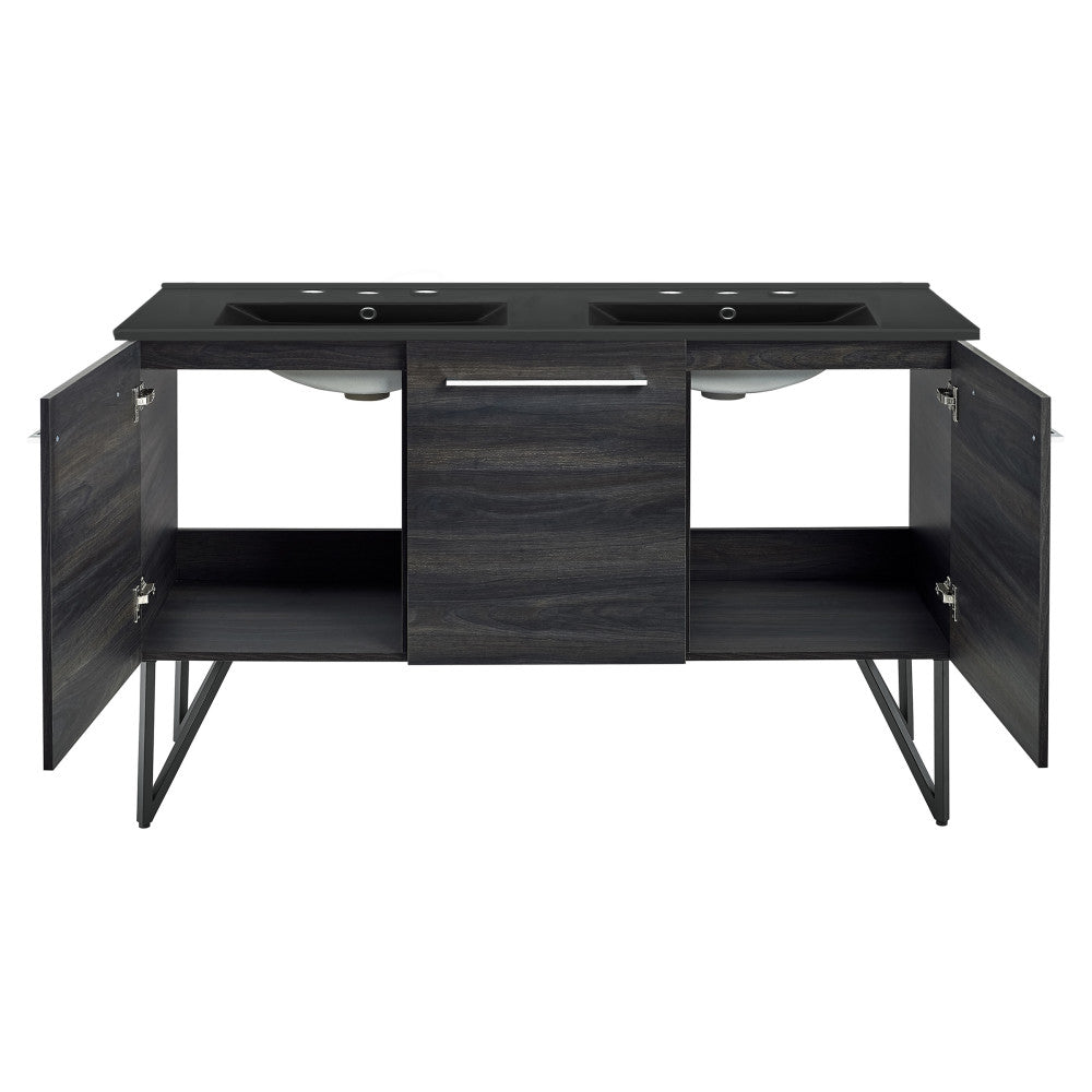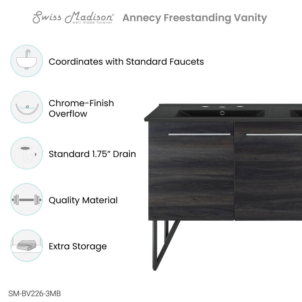 Annecy 60 in. Black Walnut, Double Basin Bathroom Vanity With Black, 3-Hole Artificial Stone Sink Top