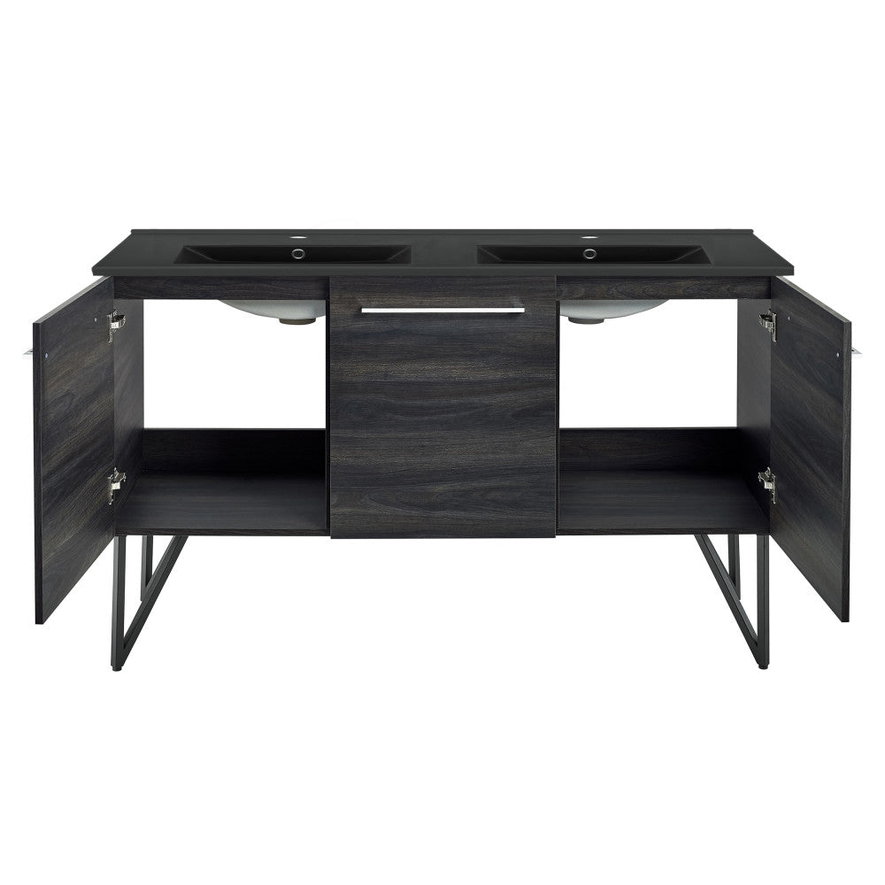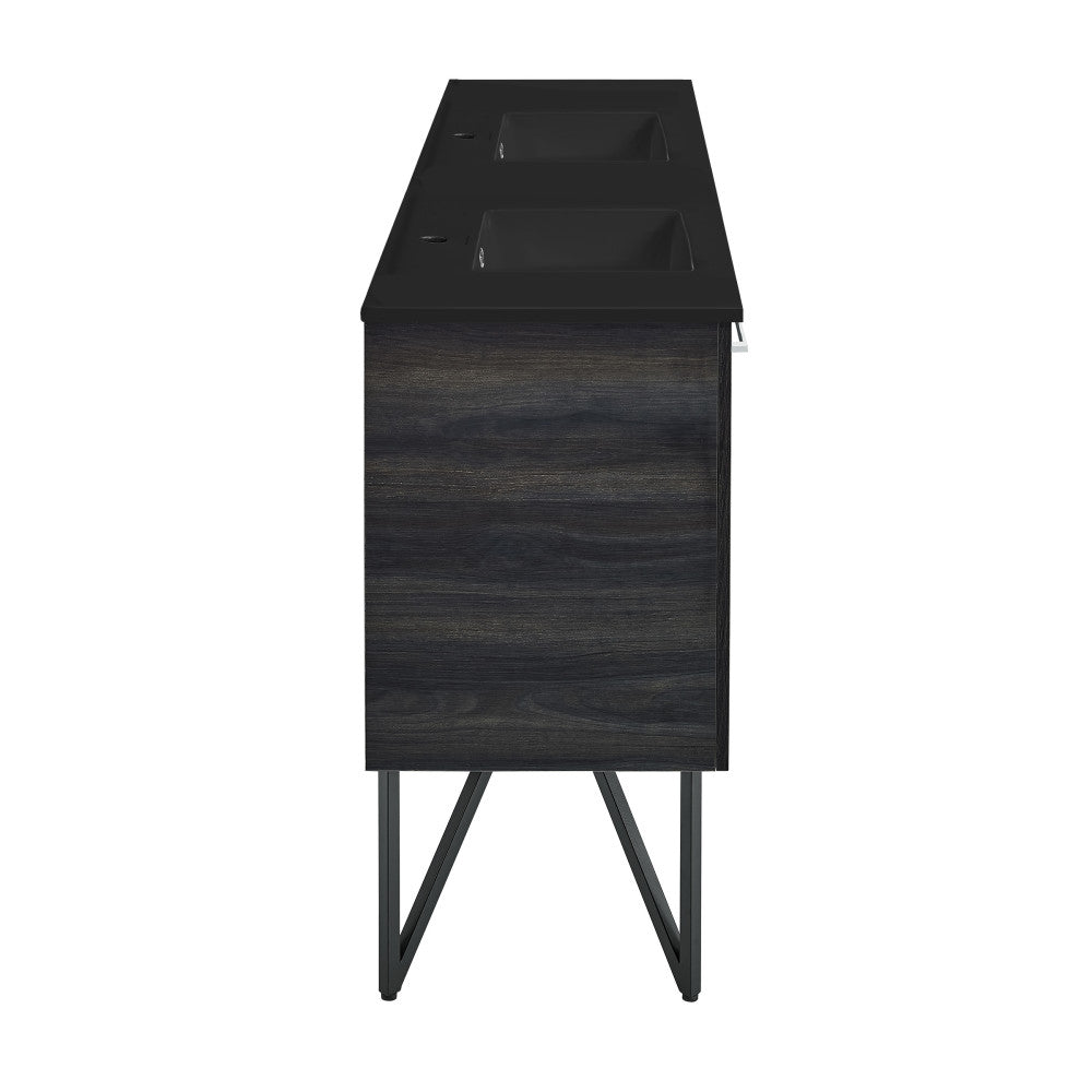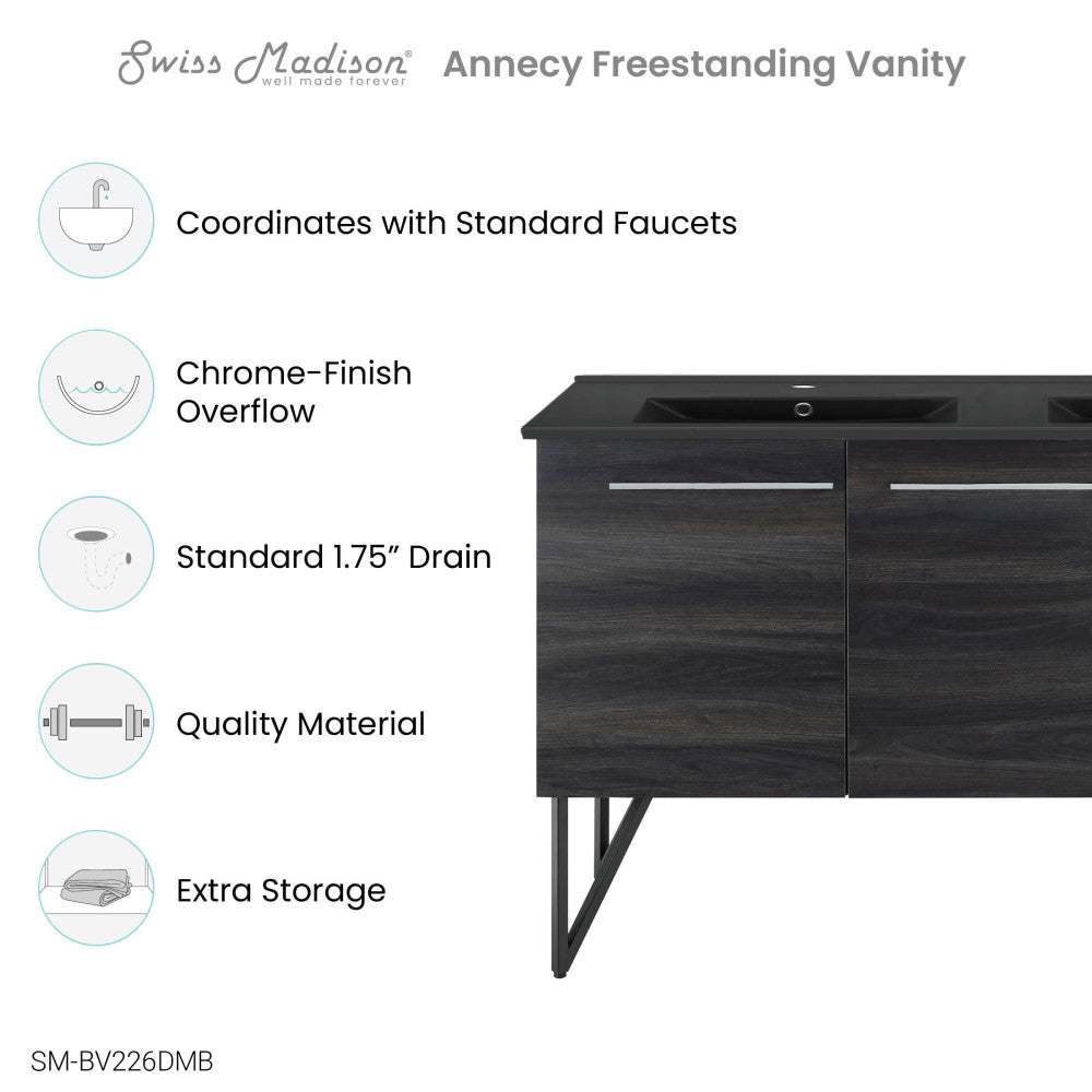 Annecy 60 in. Black Walnut, Double Basin Bathroom Vanity With Black Artificial Stone Sink Top