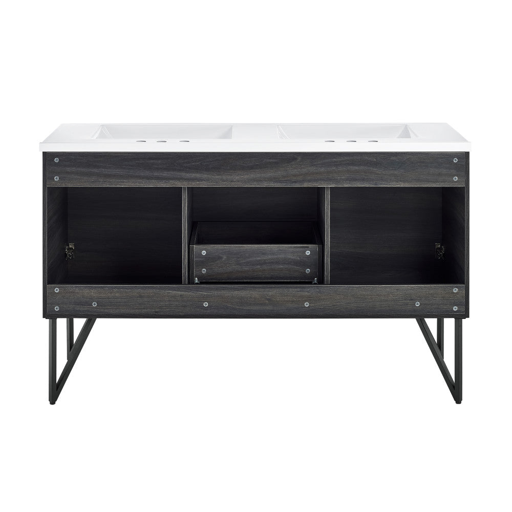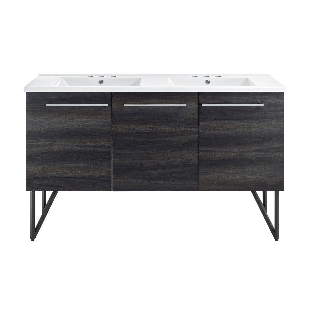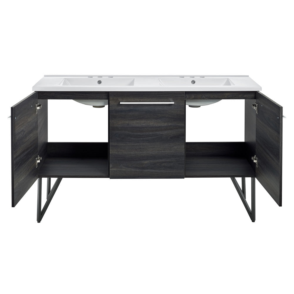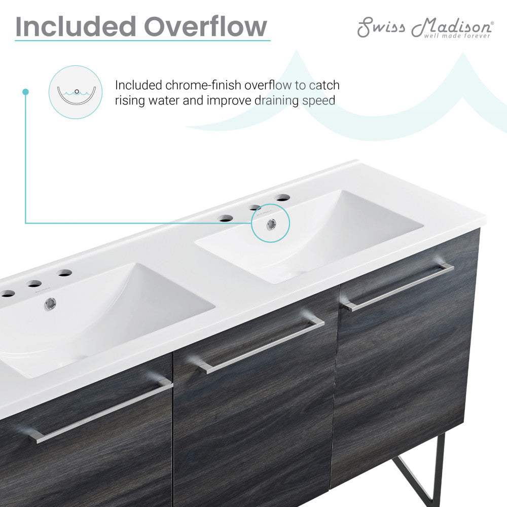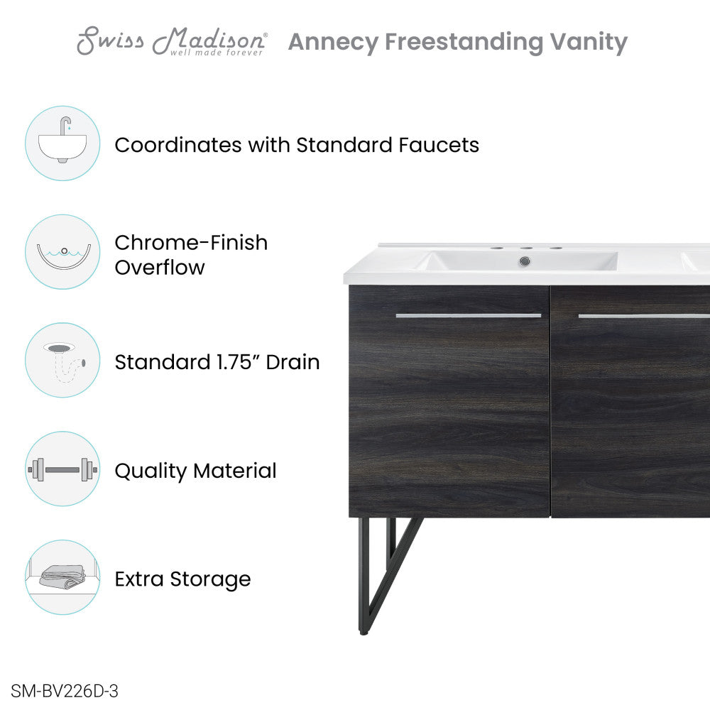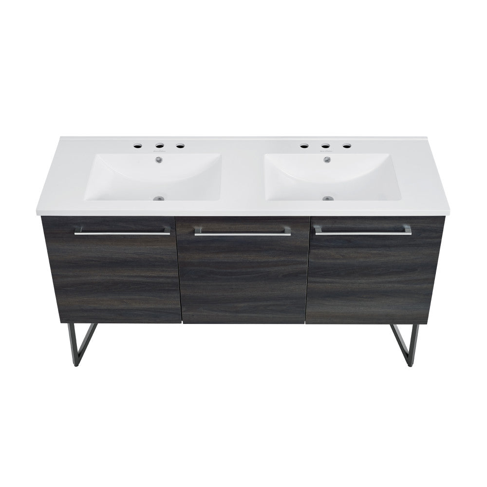 Annecy 60 in. Black Walnut, Double Basin Bathroom Vanity With White, 3-Hole Artificial Stone Sink Top