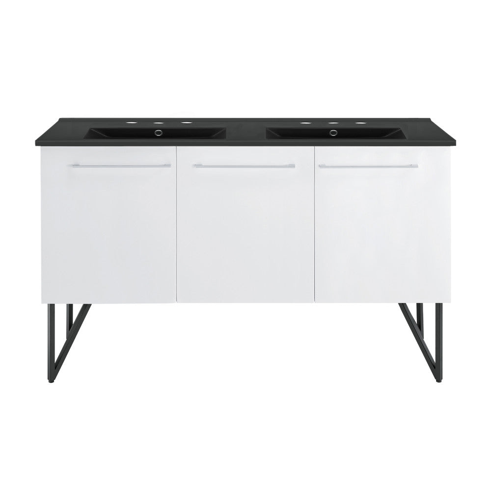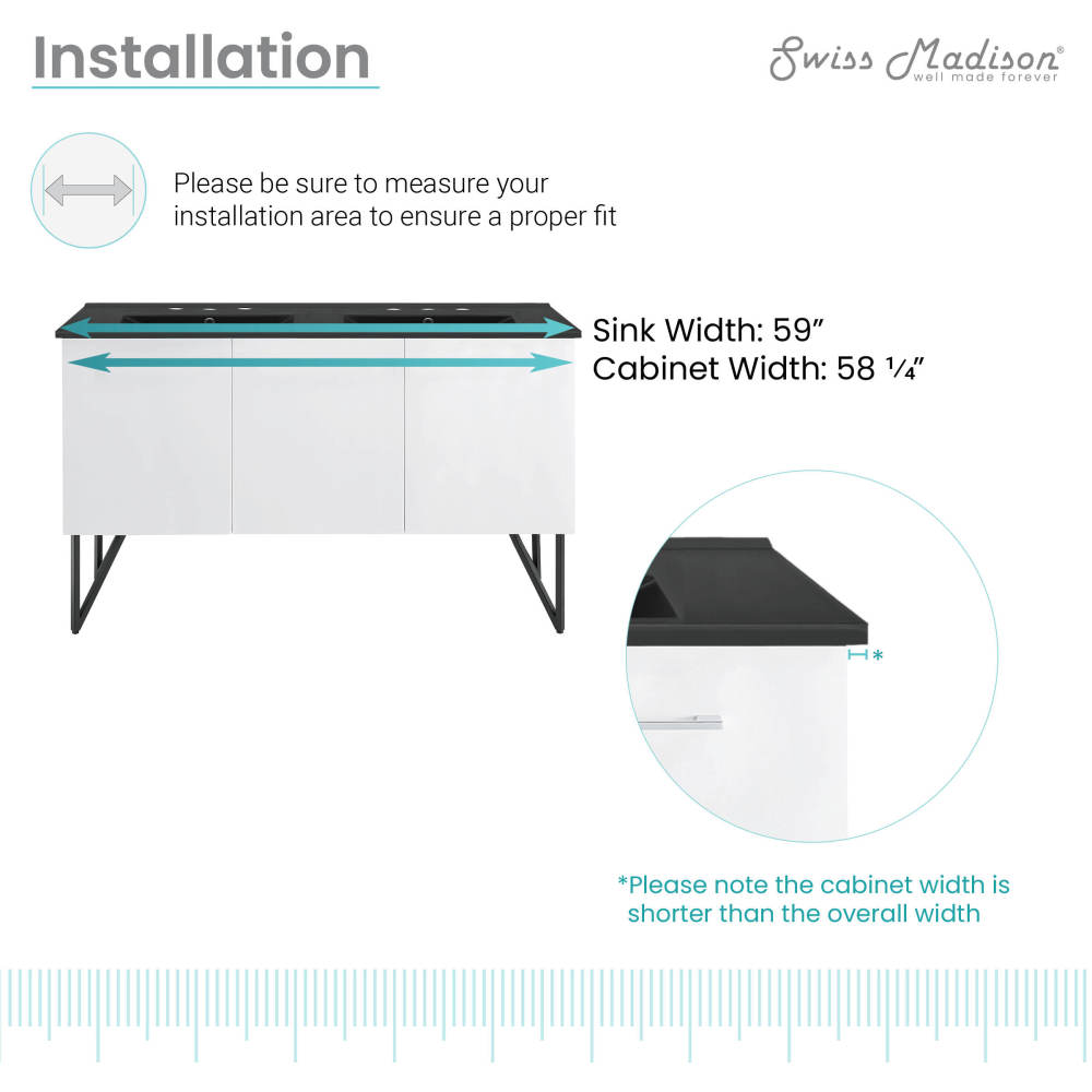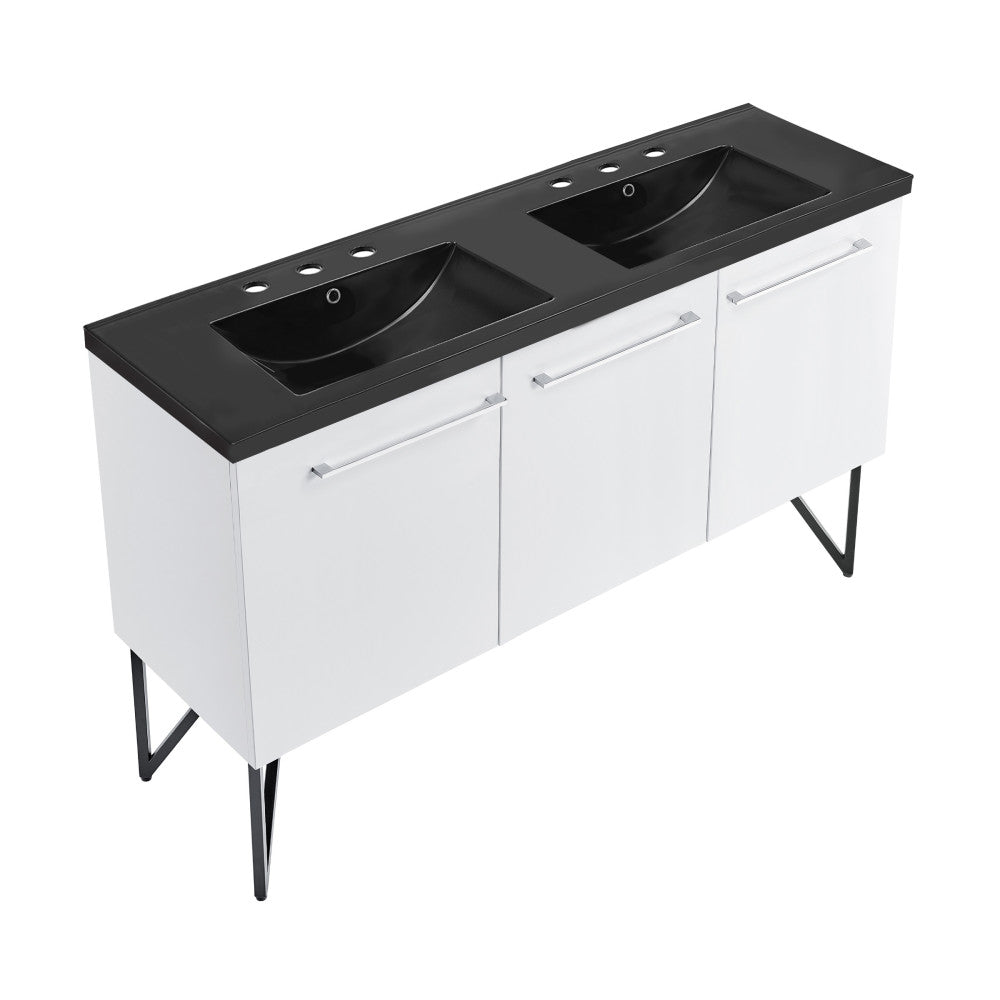 Annecy 60 in. White, Double Basin Bathroom Vanity With Black, 3-Hole Artificial Stone Sink Top