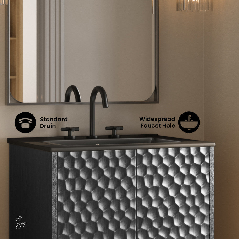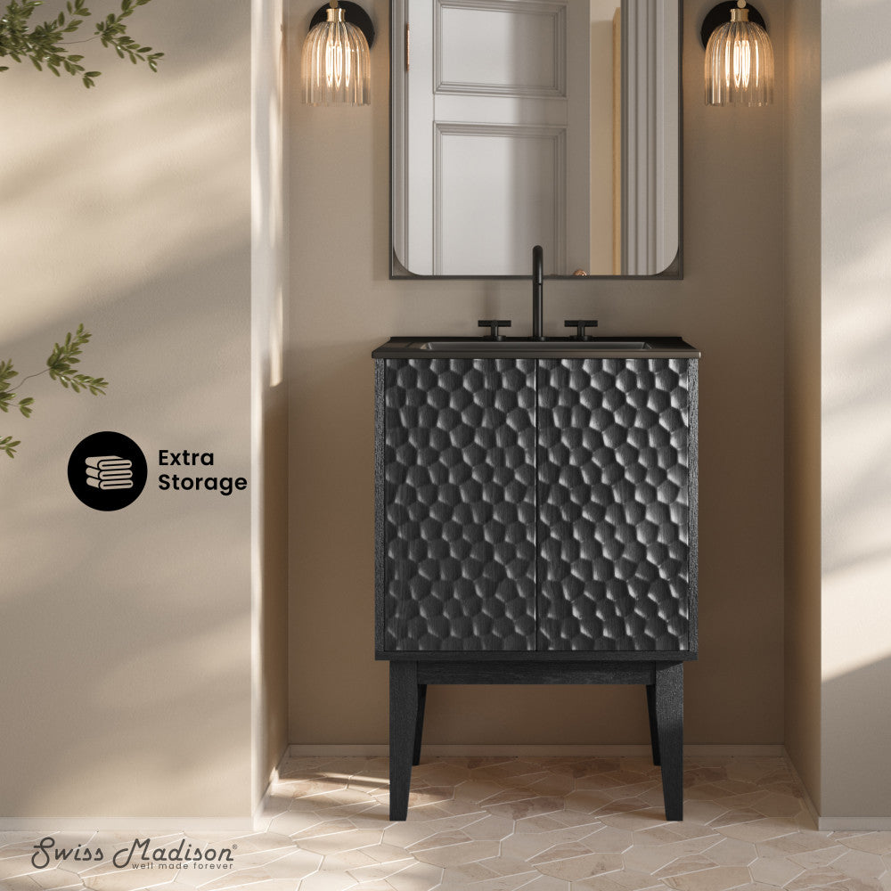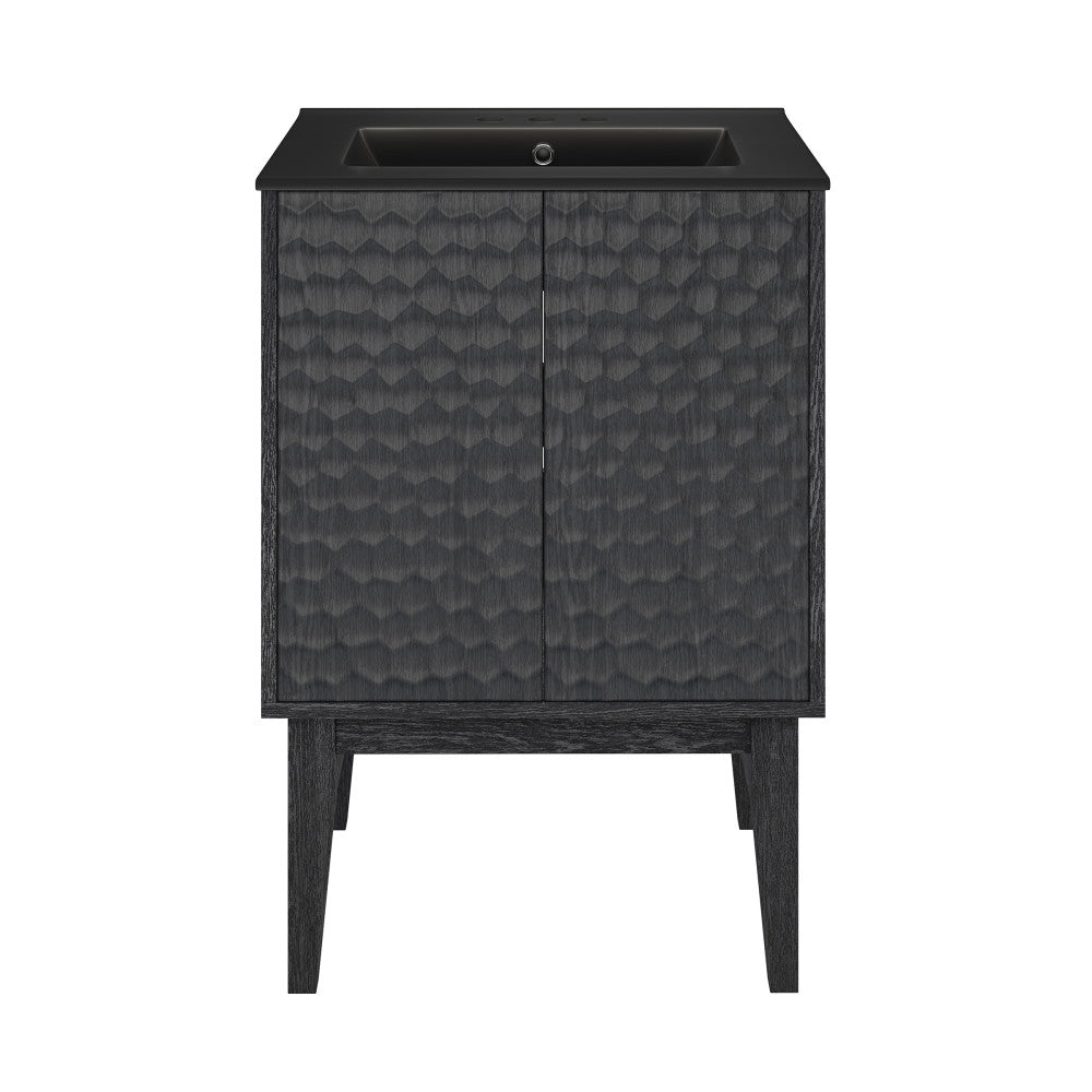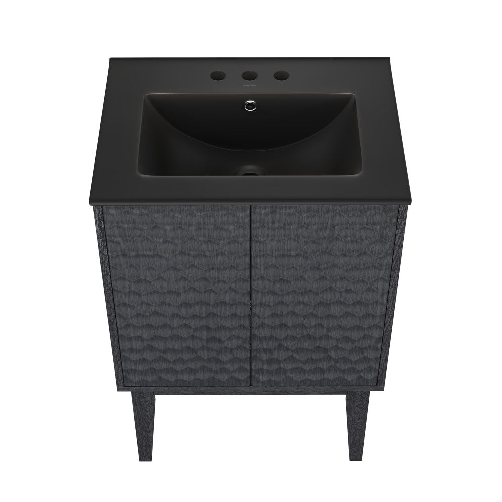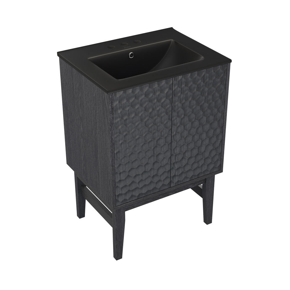 Bosse 24" Freestanding Bathroom Vanity in Black Oak with Black 3-Hole Centerset Sink Top