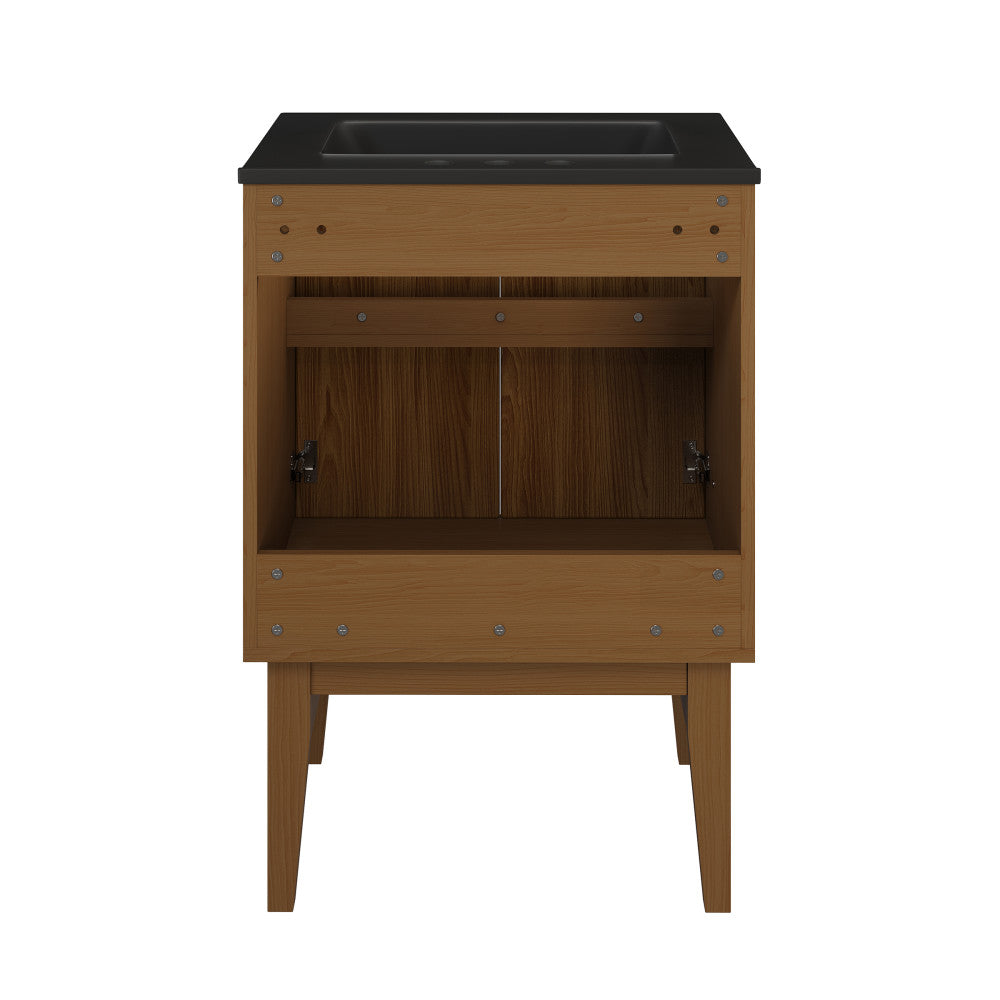 Bosse 24" Freestanding Bathroom Vanity in Brown Oak with Black 3-Hole Centerset Sink Top