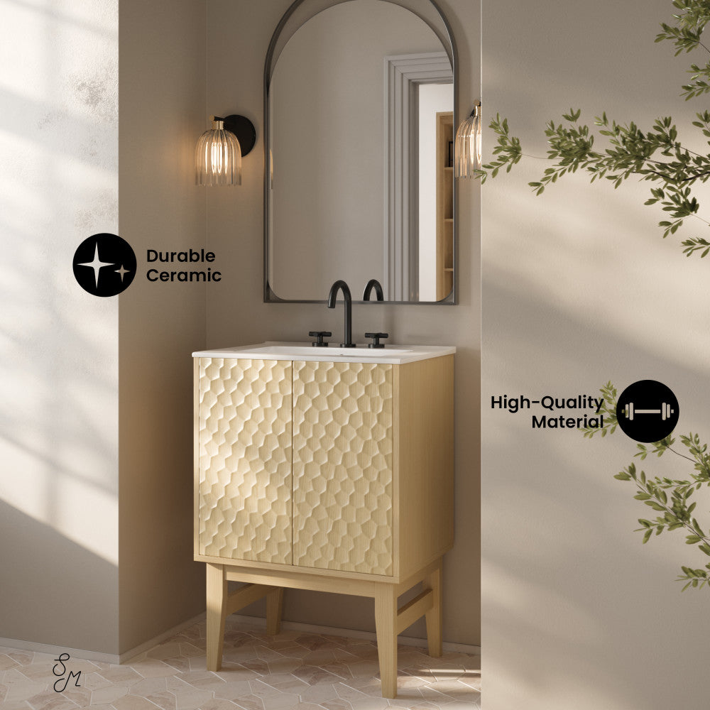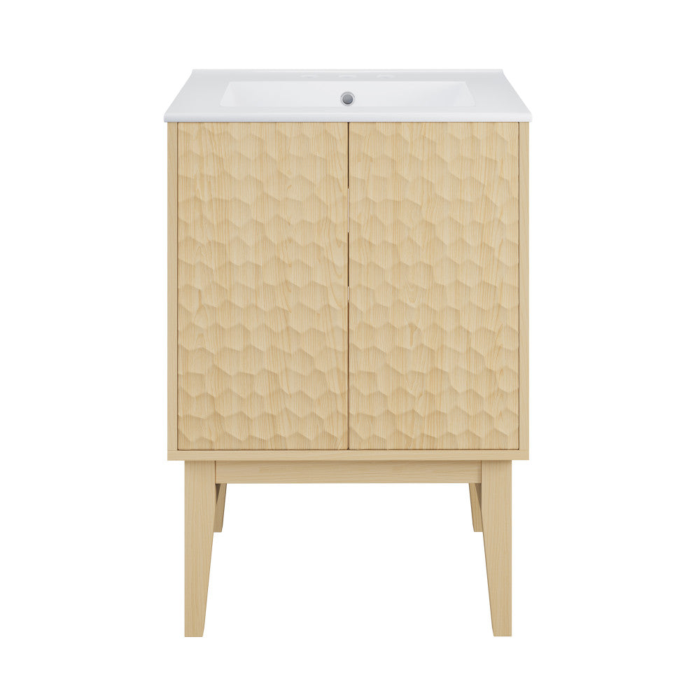 Bosse 24" Freestanding Bathroom Vanity in Natural Oak with 3-Hole Centerset Sink Top