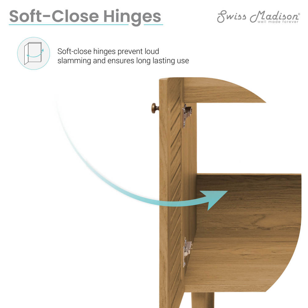 - 2 Doors 3 Open Shelves: Vanities offering two soft closing doors and 3 open shelves enhances your space with slam-free technology, additional storage space and creates an upscale appearance