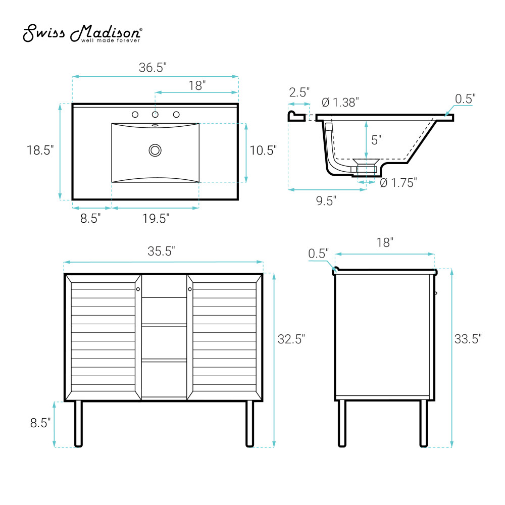 - 2 Doors 3 Open Shelves: Vanities offering two soft closing doors and 3 open shelves enhances your space with slam-free technology, additional storage space and creates an upscale appearance