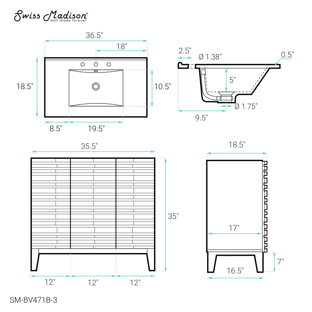 - Faucet hole: Pre-drilled standard 1 3/8"