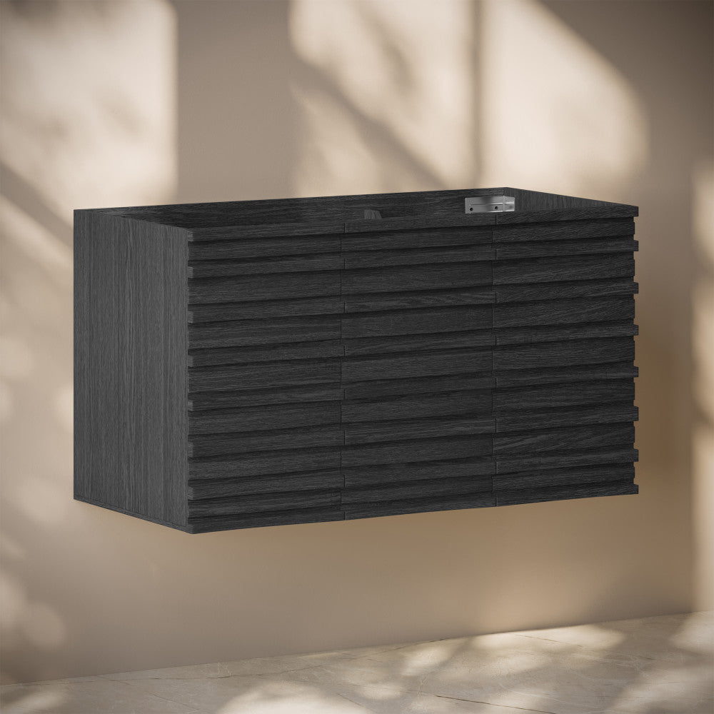 Immerse yourself in the gentle flow of design with the Cascade collection, where fluid lines and captivating forms create an atmosphere of tranquil beauty. Tailor your bathroom to perfection with our cabinets-only vanities, offering customizable vanity top solutions to integrate with your design vision. Offered in black oak.