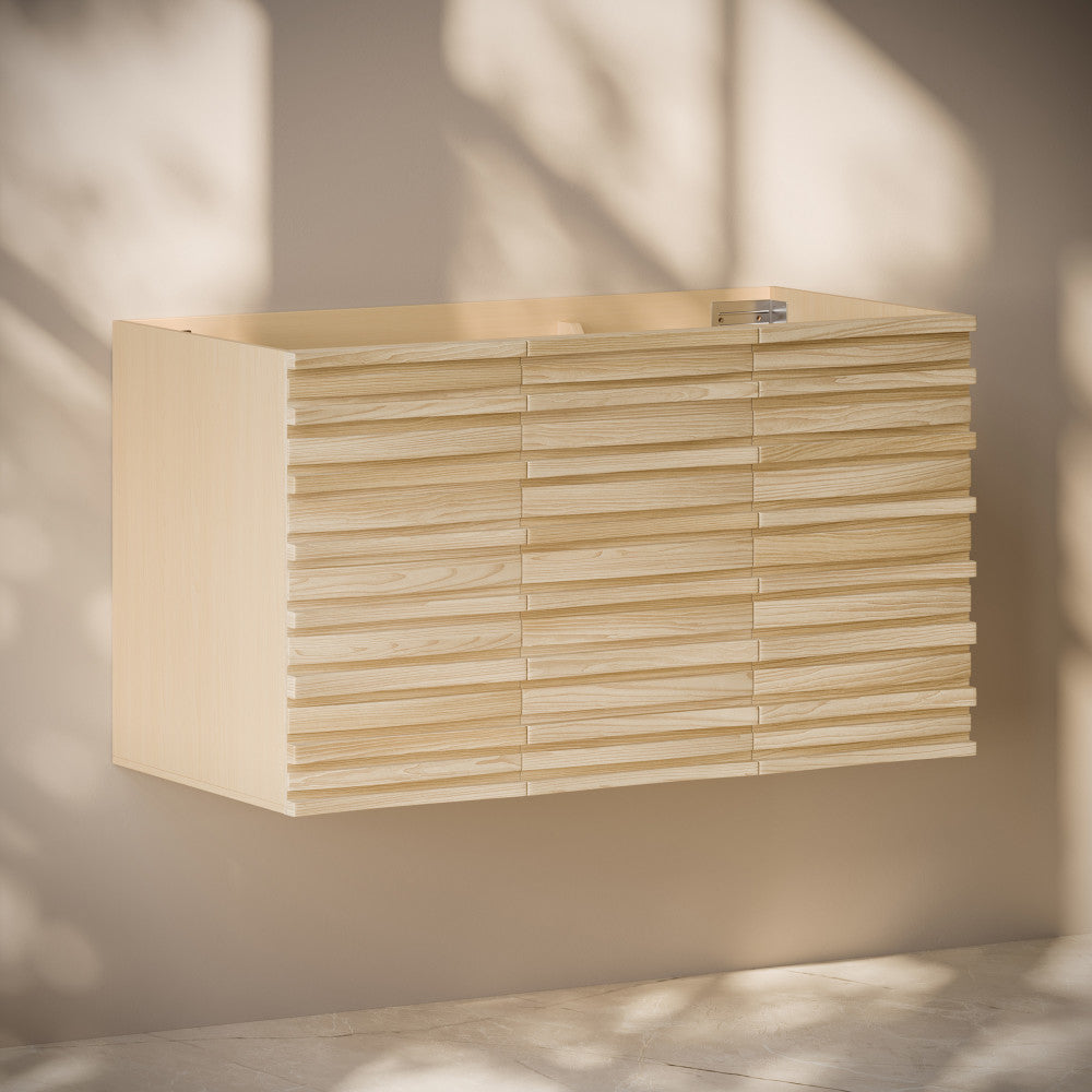 Immerse yourself in the gentle flow of design with the Cascade collection, where fluid lines and captivating forms create an atmosphere of tranquil beauty. Tailor your bathroom to perfection with our cabinets-only vanities, offering customizable vanity top solutions to integrate with your design vision. Offered in natural oak.