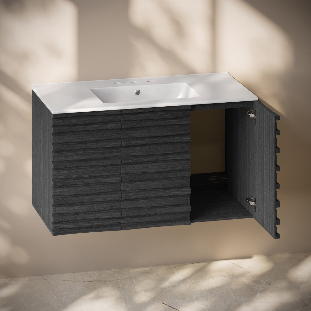 Immerse yourself in the gentle flow of design with the Cascade collection, where fluid lines and captivating forms create an atmosphere of tranquil beauty. Transform your bathroom into a sanctuary of style and functionality with our exquisite bathroom vanities, meticulously crafted to reflect your unique taste. Offered in black oak with a glossy white sink top.