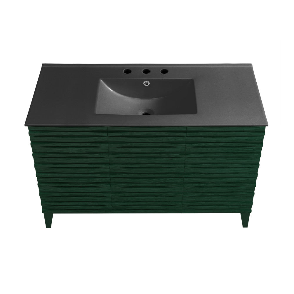 Immerse yourself in the gentle flow of design with the Cascade collection, where fluid lines and captivating forms create an atmosphere of tranquil beauty. Transform your bathroom into a sanctuary of style and functionality with our exquisite bathroom vanities, meticulously crafted to reflect your unique taste. Offered in green oak with a matte black sink top.