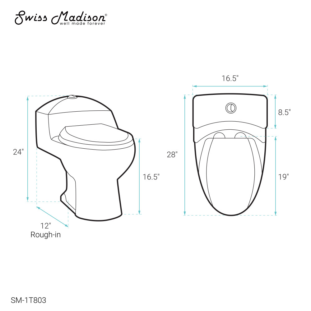 Select where you want the flush button or lever located. Side flush is on the right-hand side of the tank, left side is on the opposite, dual top offers two buttons on top, and touchless uses sensor technology. Swiss Madison Toilet Guide