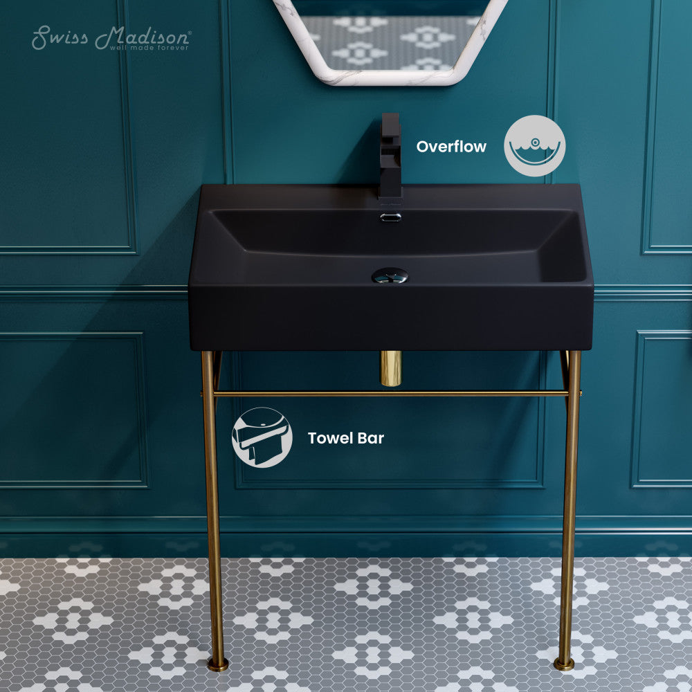 Discover the radiant elegance of the Claire collection, where ethereal designs elevate the ambiance of any setting. Redefine sophistication in your bathroom with our console sink, merging vintage charm and a minimalist design for a unique allure. Offered in black with a matte finish.
