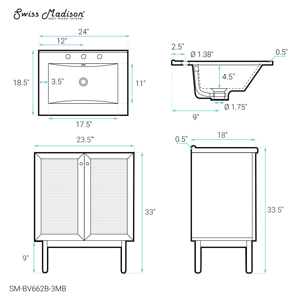 - Faucet hole: Pre-drilled standard 1 3/8"