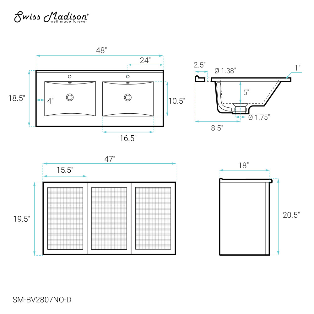 - Faucet hole: Pre-drilled standard 1 3/8"