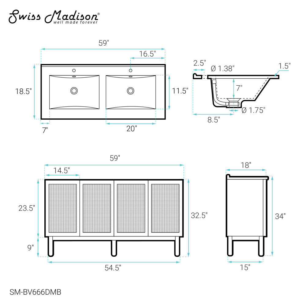 - Faucet hole: Pre-drilled standard 1 3/8"