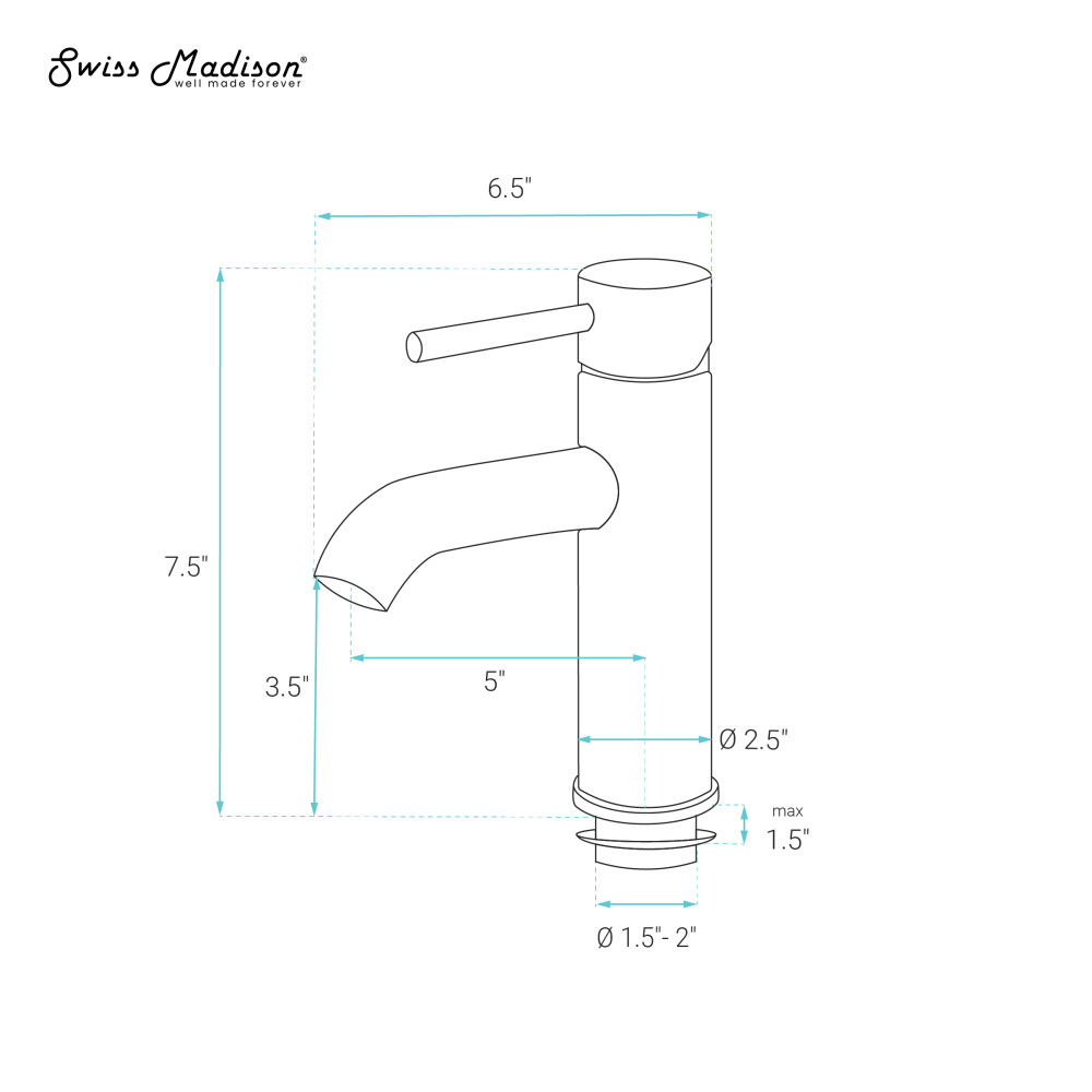 - Single Handle: A single handle controls both on and off functions and control of hot and cold water.