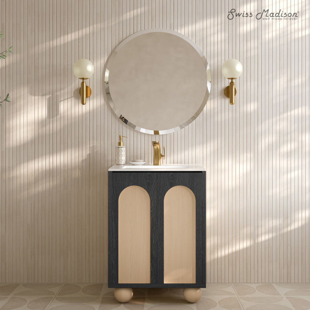 Infuse your home with the joyous essence of the Plaisir collection, where comfort and style converge effortlessly. Transform your bathroom into a sanctuary of style and functionality with our exquisite bathroom vanities, meticulously crafted to reflect your unique taste. Offered in black oak with a glossy white sink top.