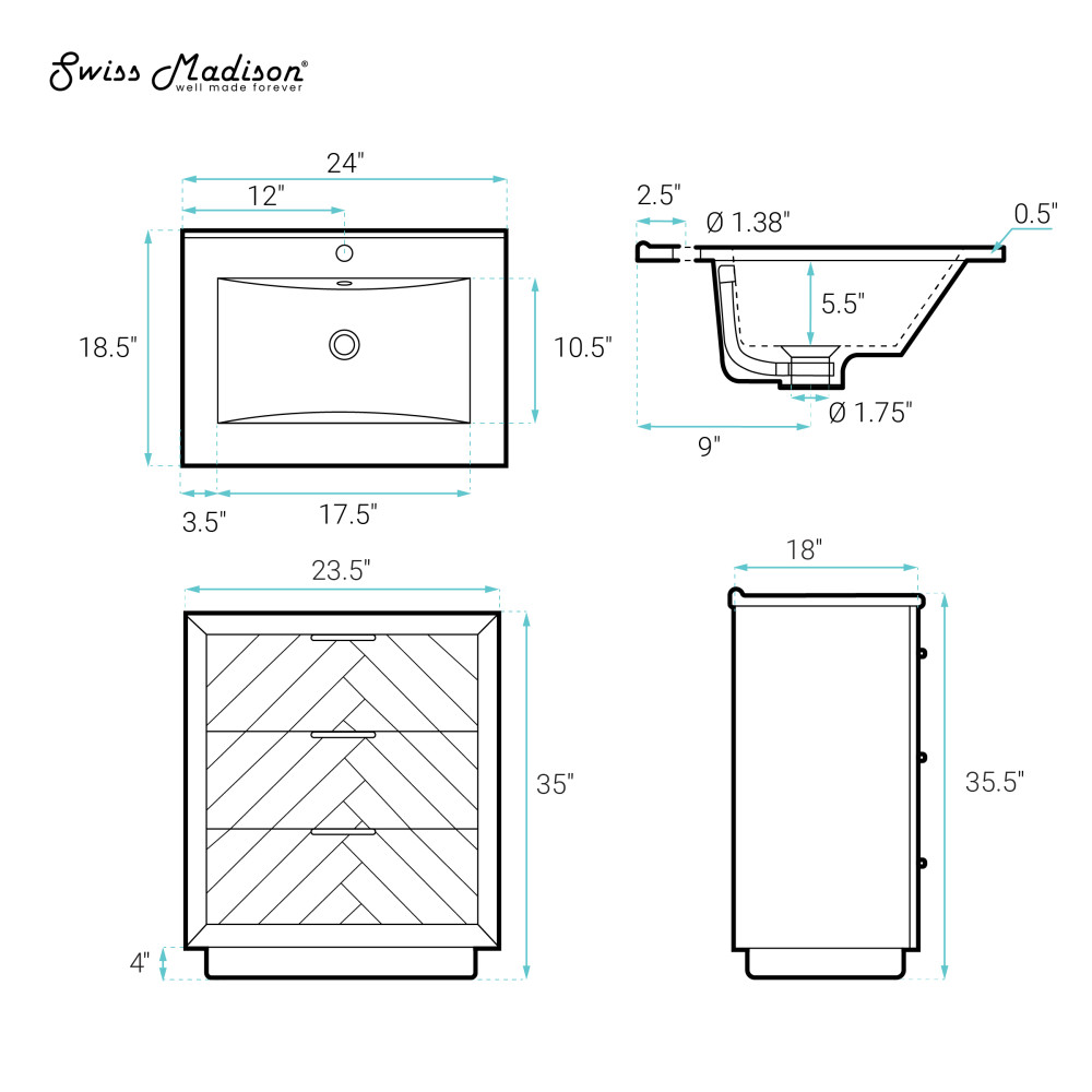 - Faucet hole: Pre-drilled standard 1 3/8"