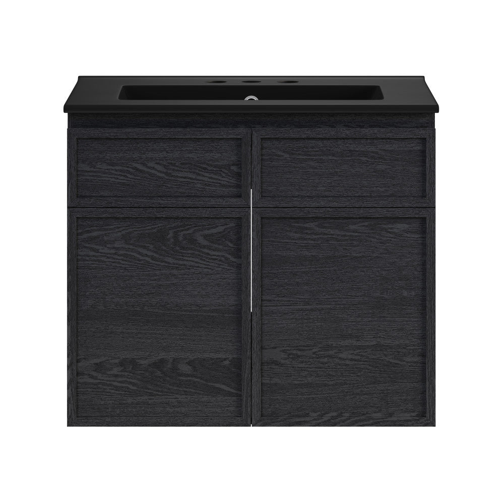 St. Tropez 24" Wall-Mounted Bathroom Vanity in Black Oak with Black 3-Hole Centerset Sink Top