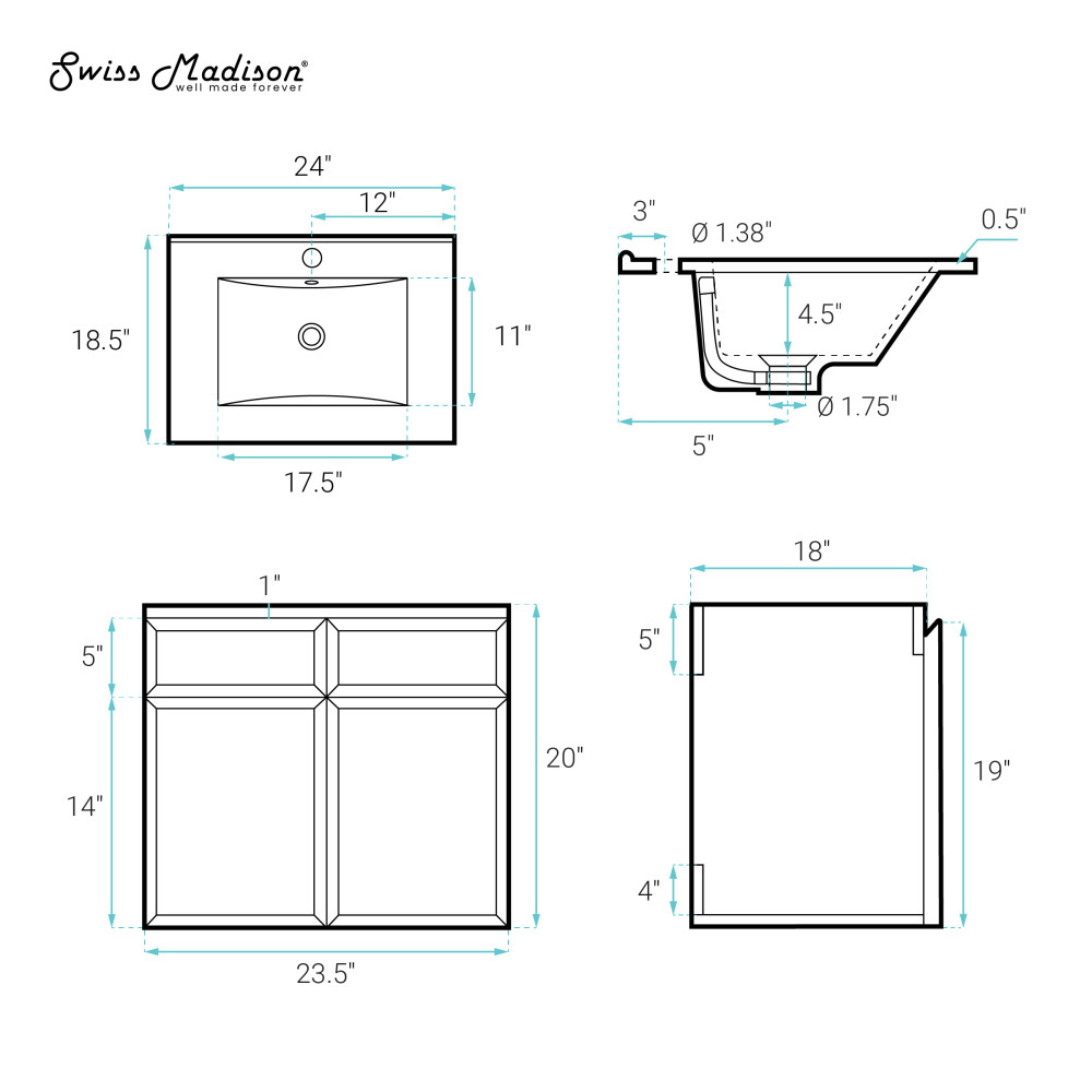 - Faucet hole: Pre-drilled standard 1 3/8”