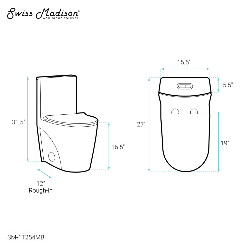 Select where you want the flush button or lever located. Side flush is on the right-hand side of the tank, left side is on the opposite, dual top offers two buttons on top, and touchless uses sensor technology. Swiss Madison Toilet Guide