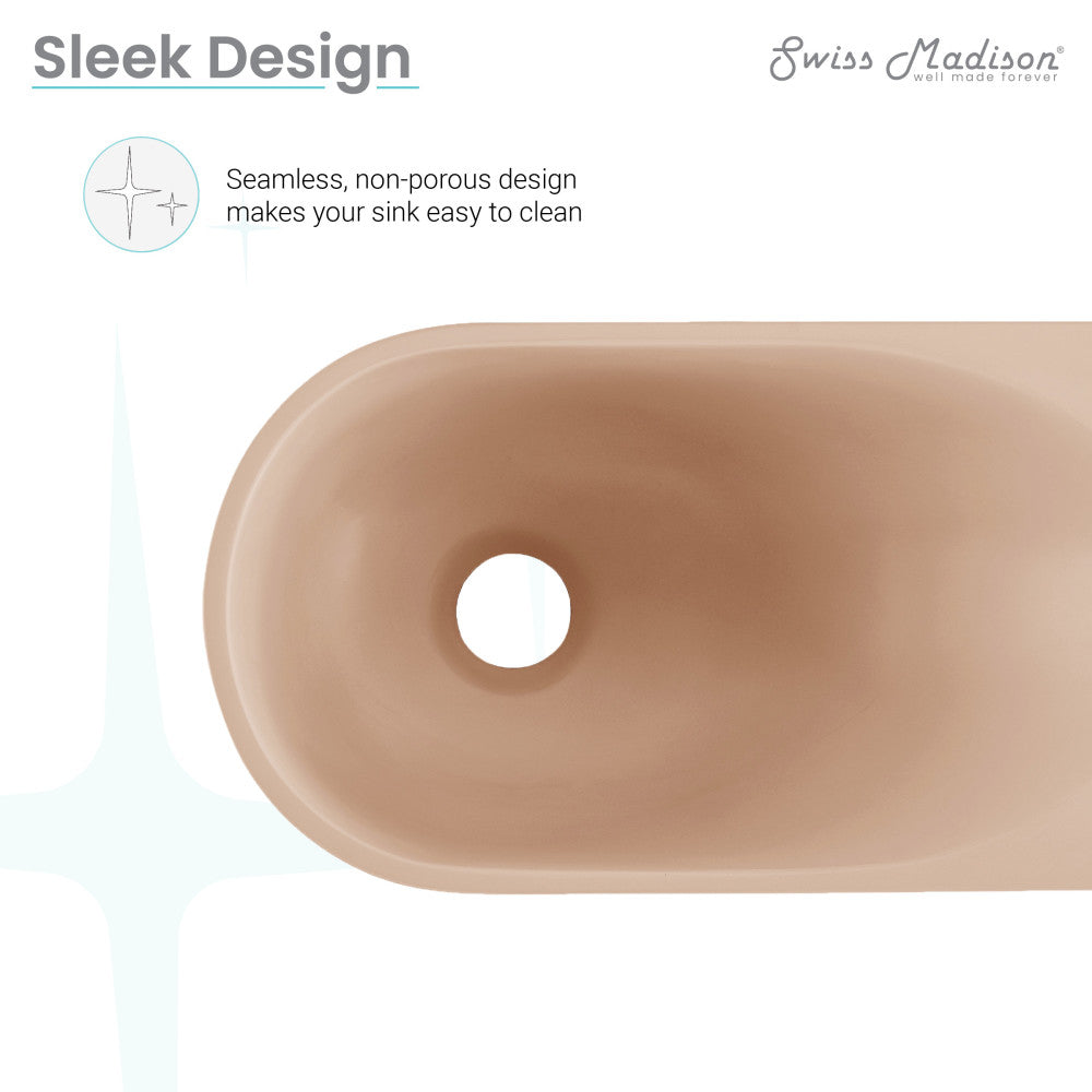 Immerse yourself in the elegance of earthy hues with the Terre collection, creating a grounded and tranquil ambiance. Embrace contemporary simplicity with our wall-mount sinks, combining space-efficient design and innovative aesthetics creating a sleek and functional environment. Offered in pastel peach with a matte finish.